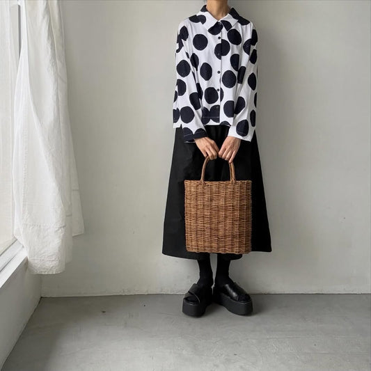 atelier naruse コットンカットソー水玉ブラウス ホワイト×ブラック