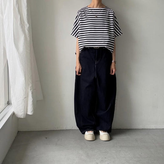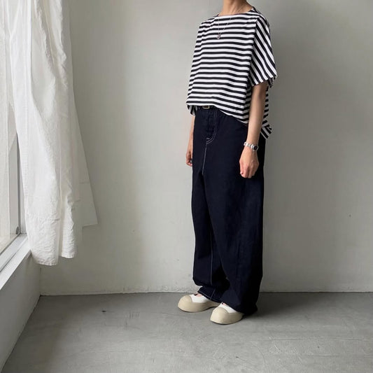homspun 天竺ボーダー半袖プルオーバー ホワイト×ブラック