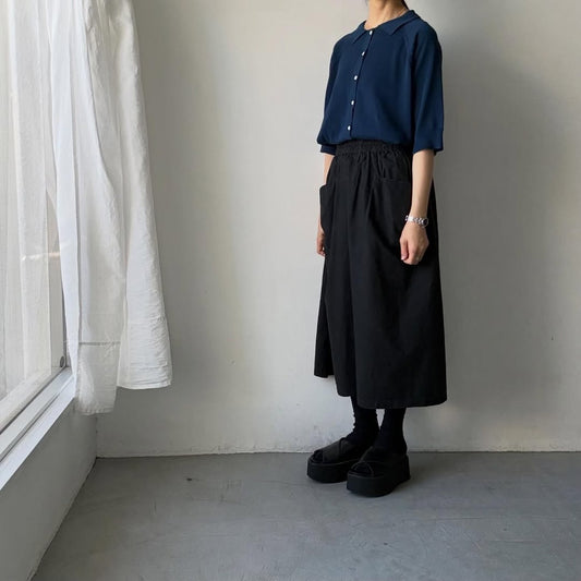 homspun ソフトコンパクトヤーン6分袖ニット襟付きカーディガン ブラック
