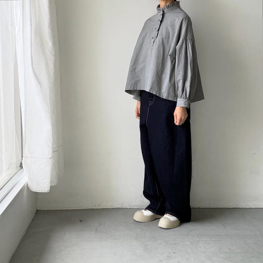🟡週明け入荷分予約受付中🟡Linenya コットンフリル長袖ブラウス