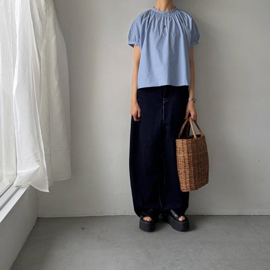 homspun 丸胴テレコクルーネック5分袖プルオーバー