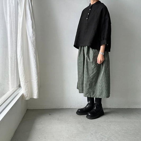 Linenya リネンスタンドカラーブラウス ブラック