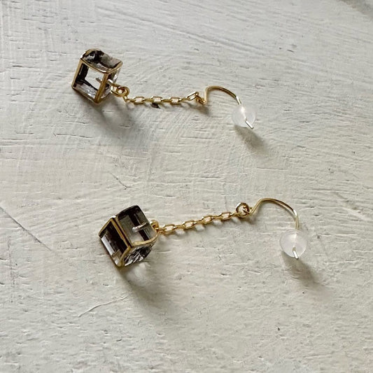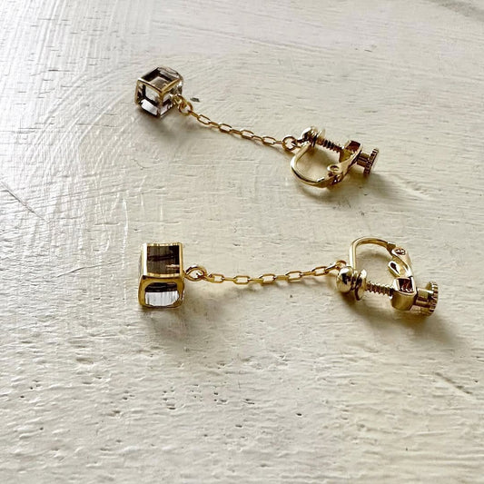 sorte glass jewelry 立方体ガラスチェーンイヤリング