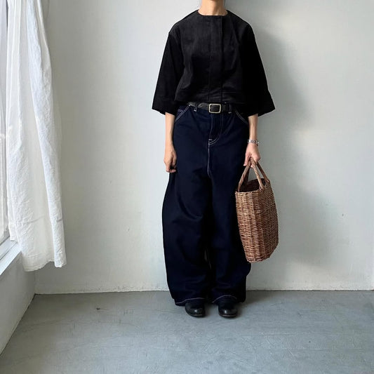 ゴーシュ コットンリネンセルベッジデニムワイドパンツ