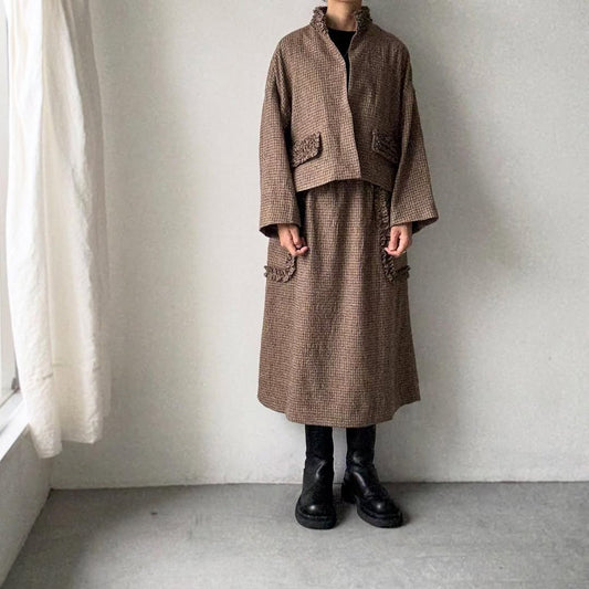 atelier naruse ウールコットンタータンチェックテーラードジャケット