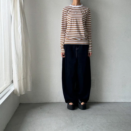 R&D.M.Co ガーゼボーダー長袖Tシャツ ブラック Mサイズ