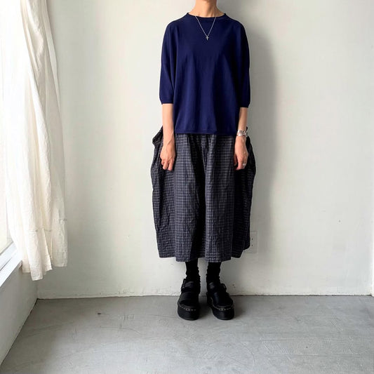 as it is コットンボートネツク5分袖ニット ネイビーブルー