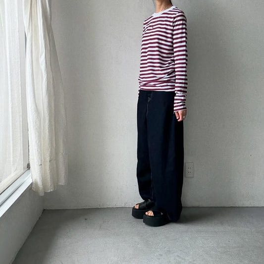 R&D.M.Co ガーゼボーダー長袖Tシャツ プラム Mサイズ