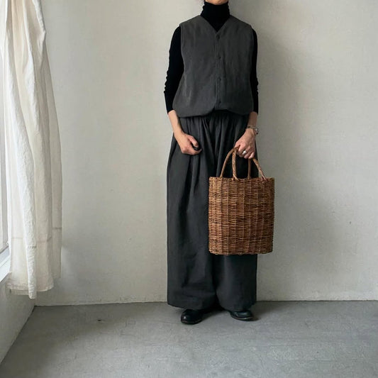 SACUCA ウールコットンリネン中綿Vネックベスト