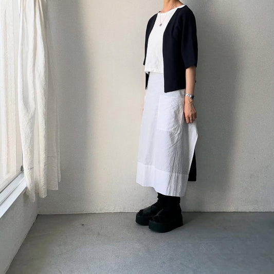 F/style 綿麻ニット5分袖カーディガン ネイビー