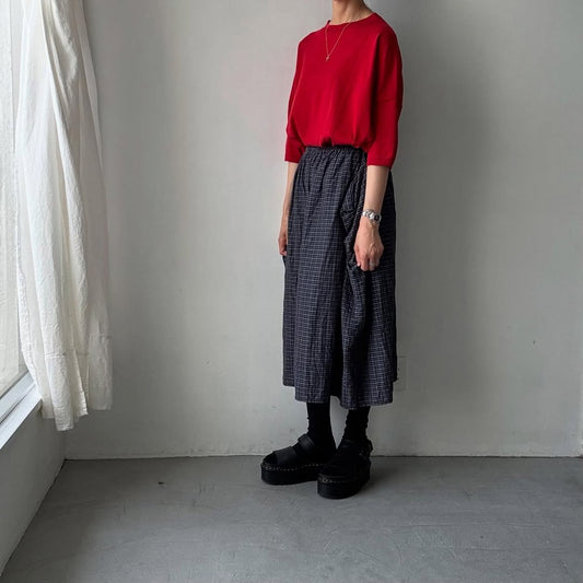 MAGALI リネンコットンギンガムフラットカラーブラウス