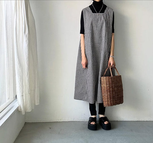 homspun コットンリネンチェックワンピース ネイビーチェック