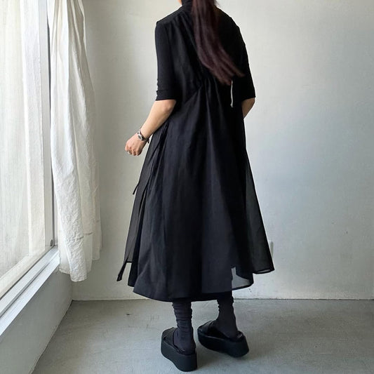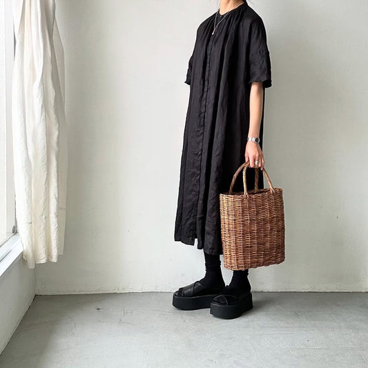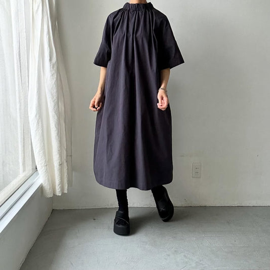 Linenya コットンリネンラミースタンドカラーワンピース スミ