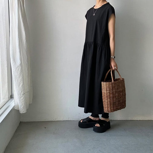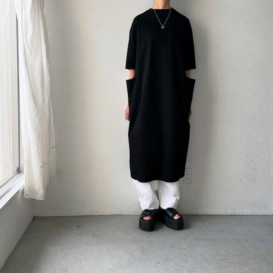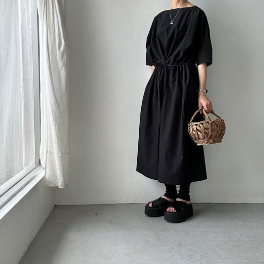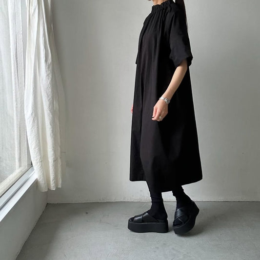 MAGALI 天日干しコットンスクエアカラーワンピース ブラック