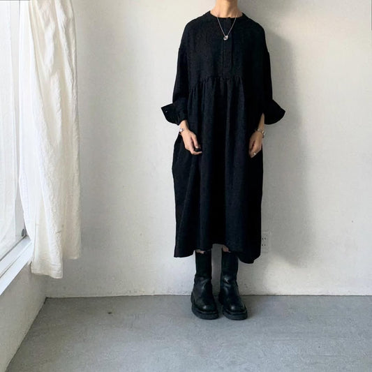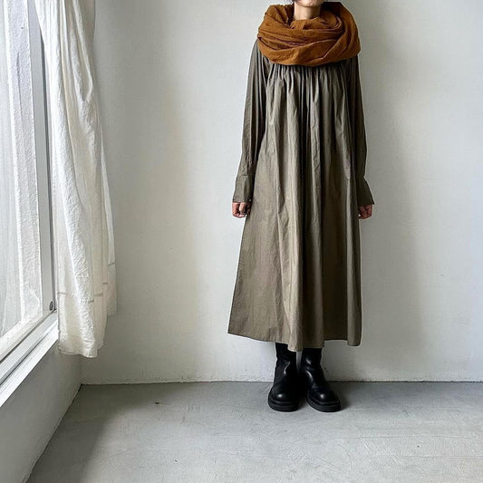 Linenya コットンヤク丸襟長袖ブラウス チャコール