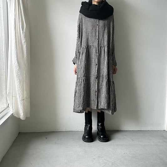 homspun ブロックチェックルームウェアセット オフホワイト×ブラック