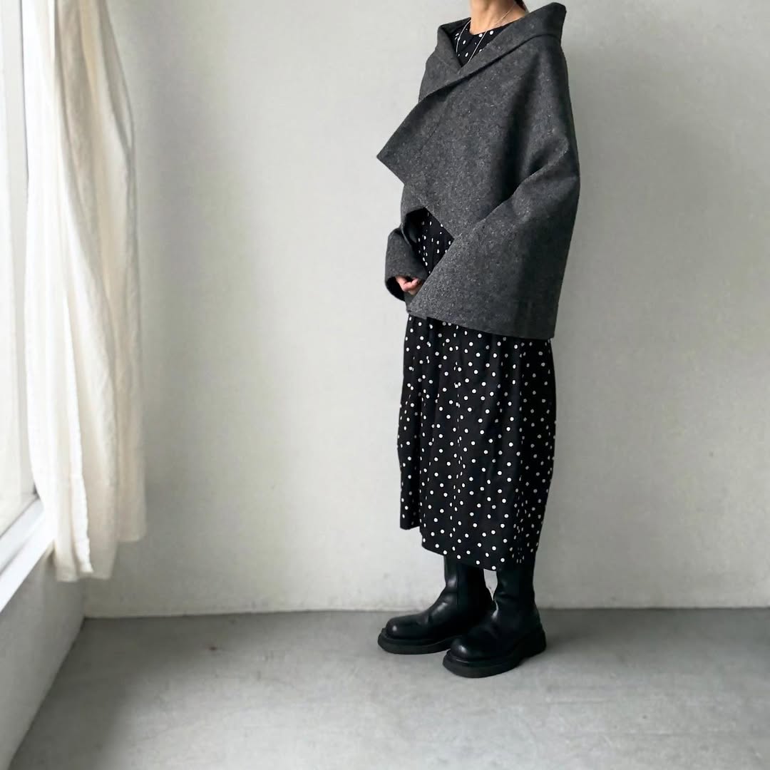 ゴーシュ ソフトメルトン2wayポンチョ&エプロンスカート グレー