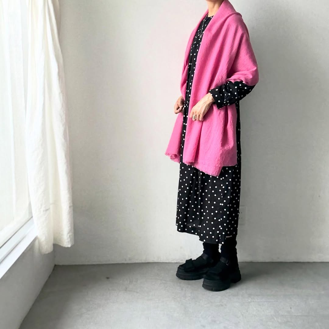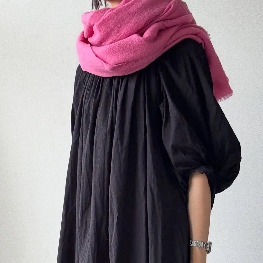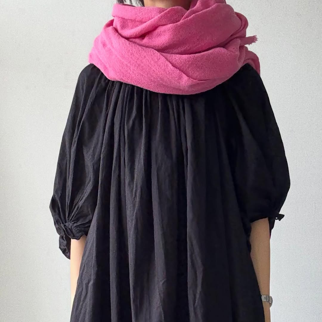 広げて縦半分に折り肩にかけてショールとしても使えます。
