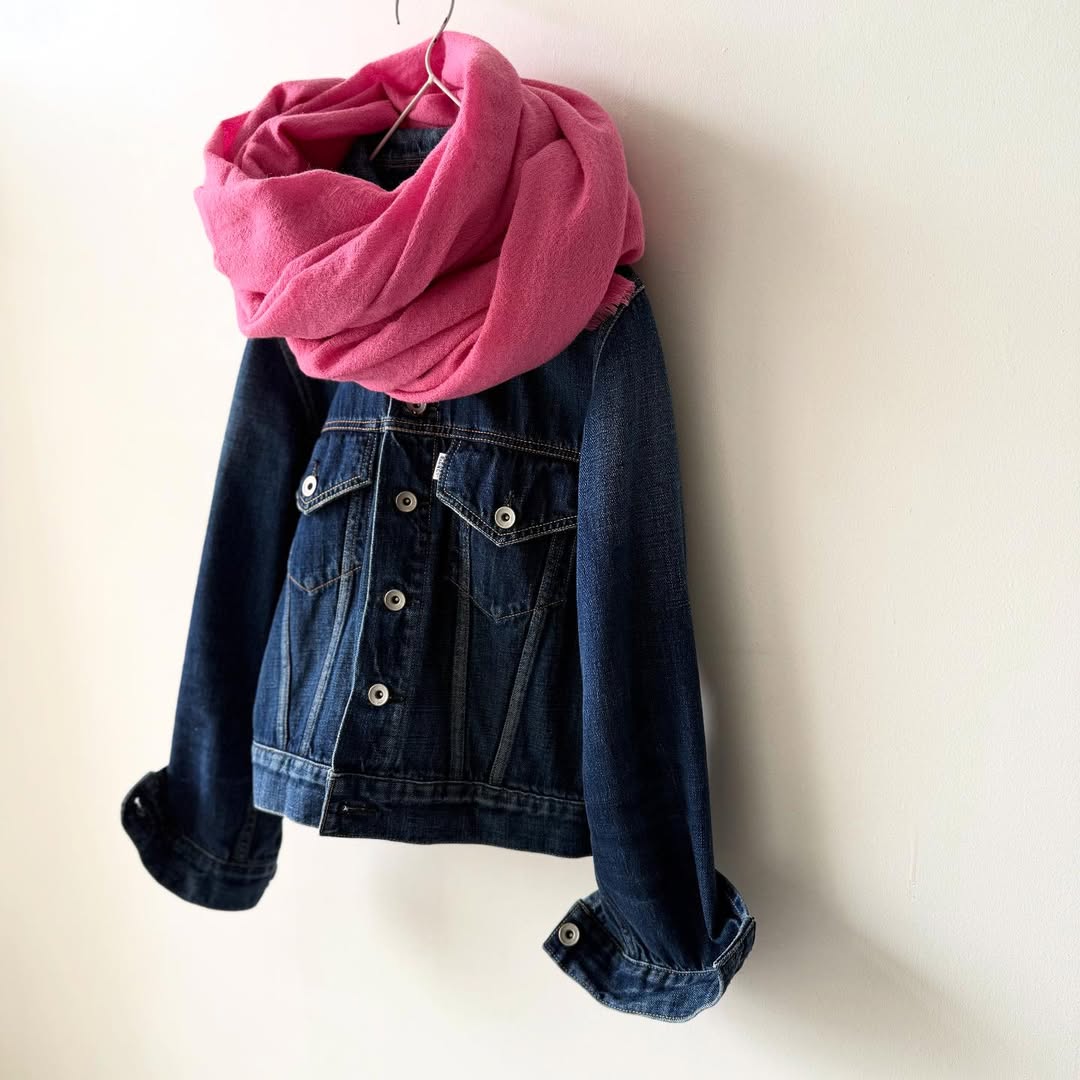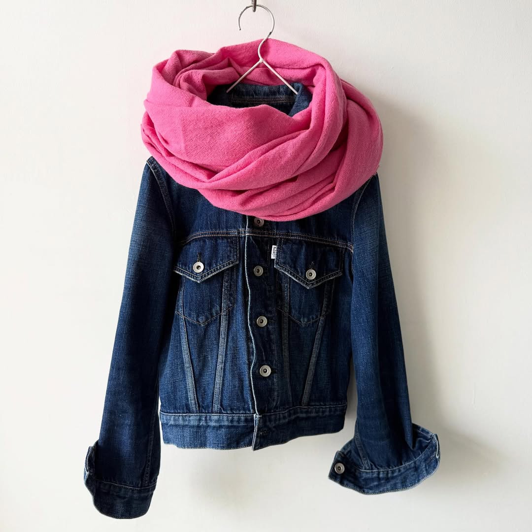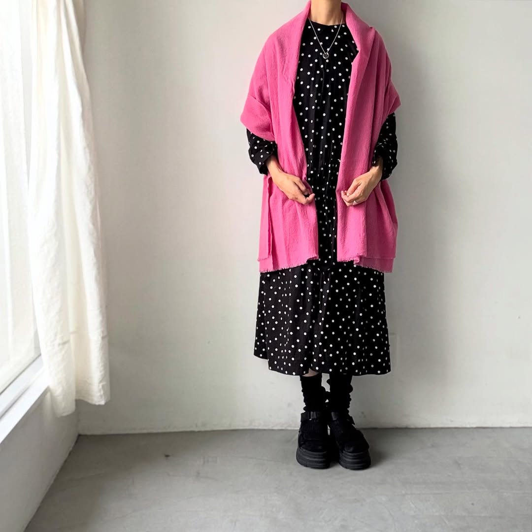 広げて縦半分に折り肩にかけてショールとしても使えます。