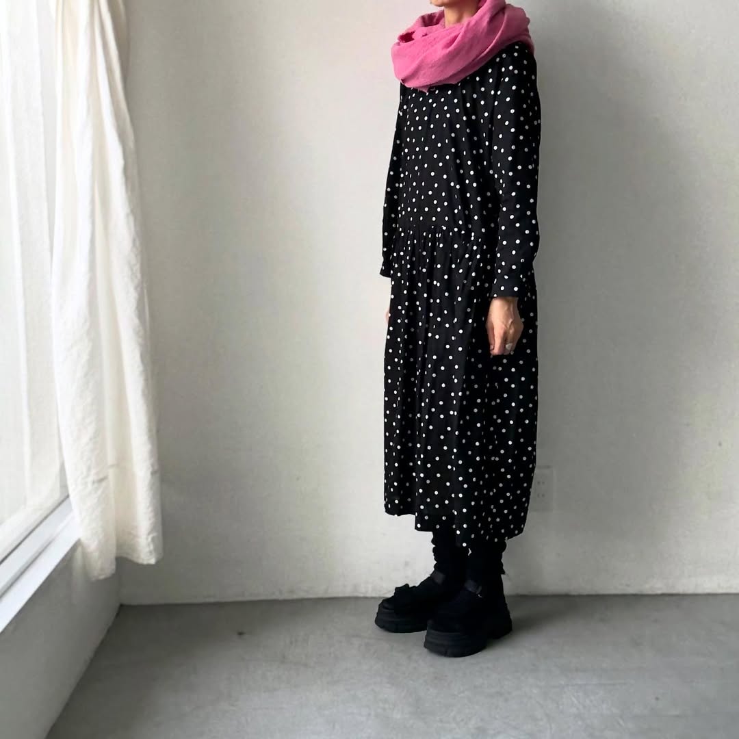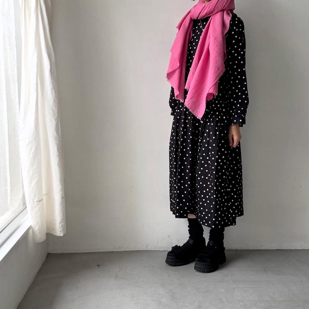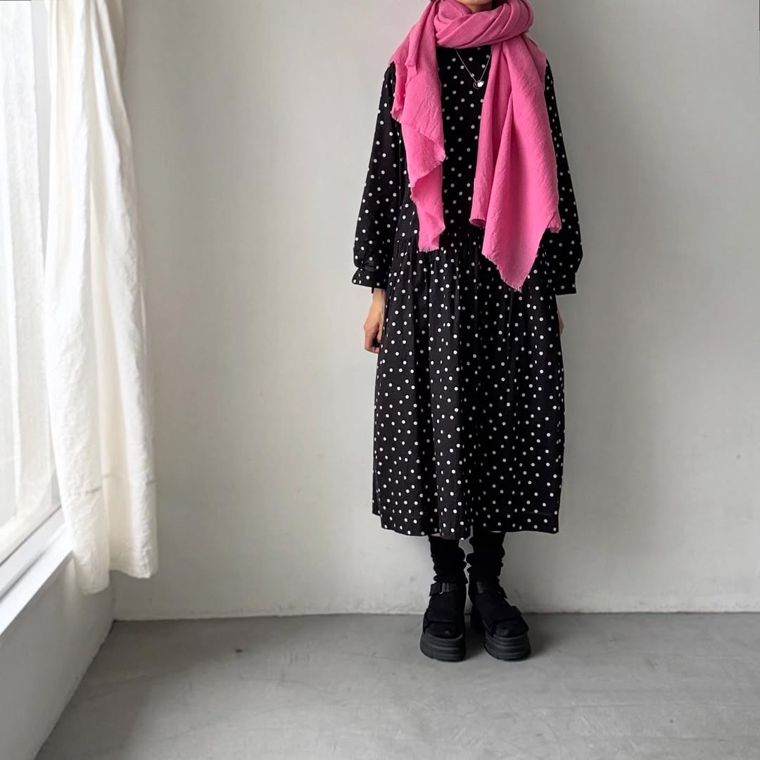 ぐるぐる巻くと首周りにボリュームが出しやすいのでコーディネートのポイントになります。
