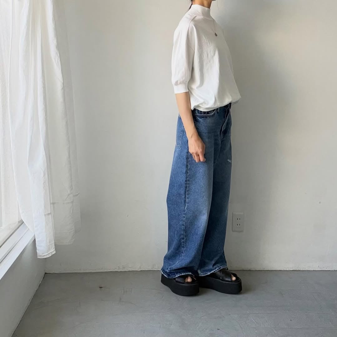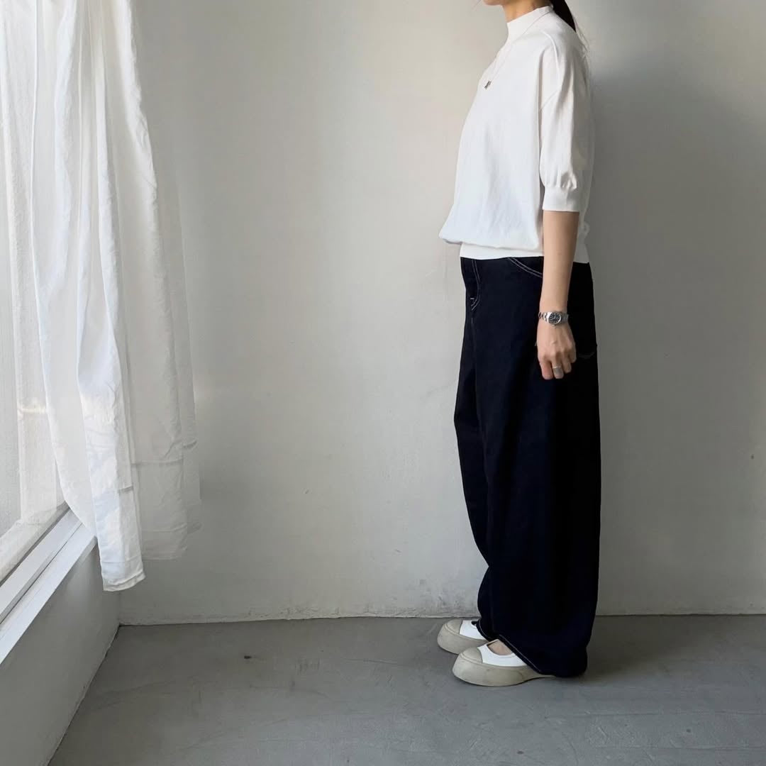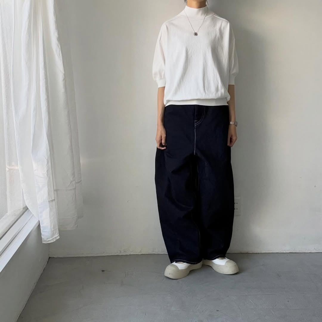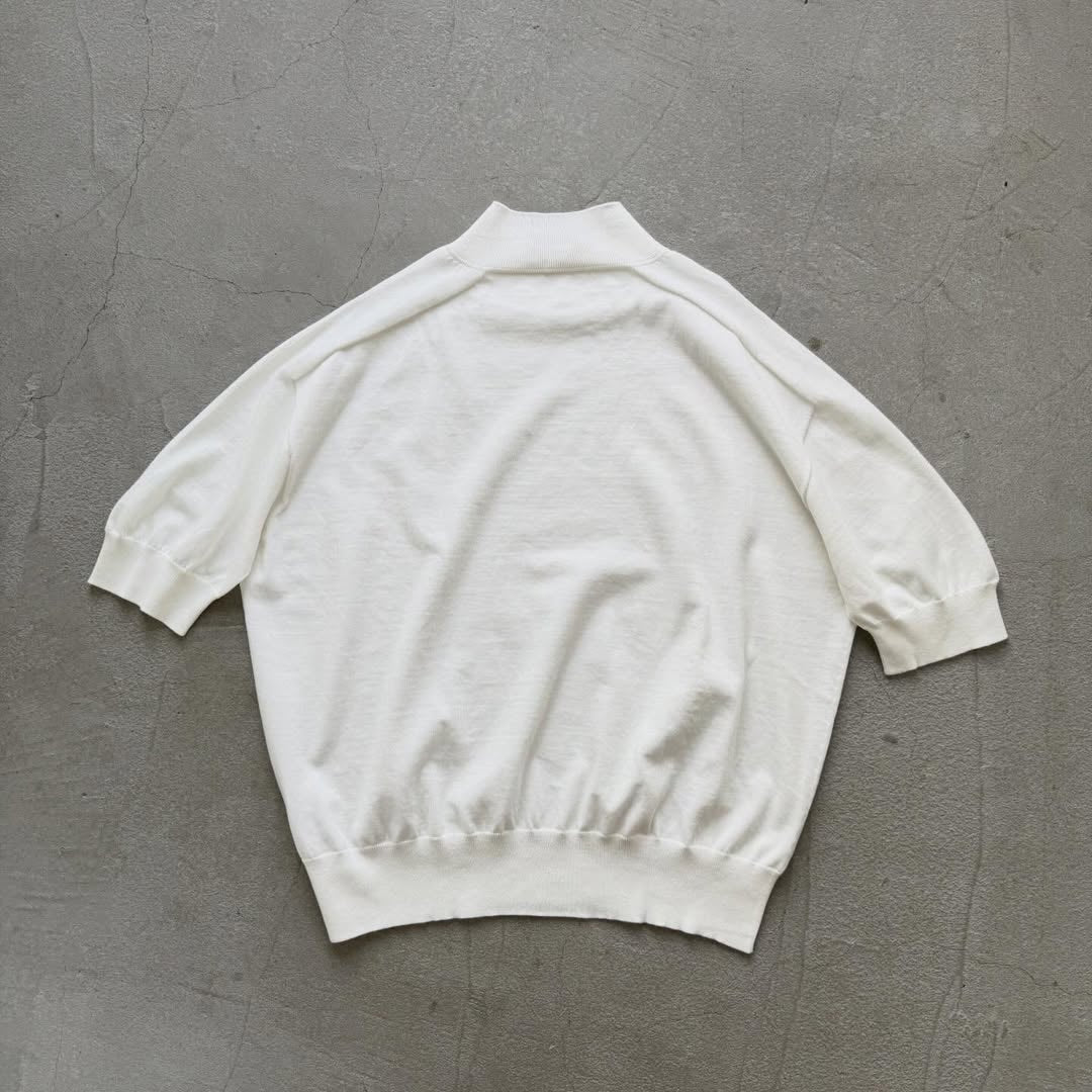 🟡木曜入荷分予約受付中🟡as it is モックネックコットン5分袖ニット ホワイト