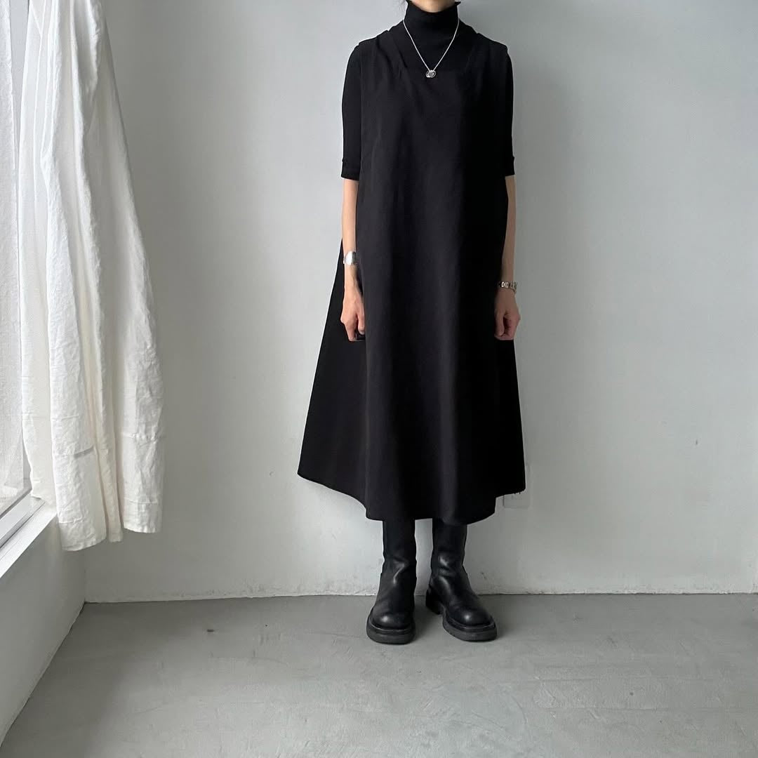 スクエアネックのワンピース。昨年までのデザインからアップデートして更に着やすく大人っぽくなりました。
