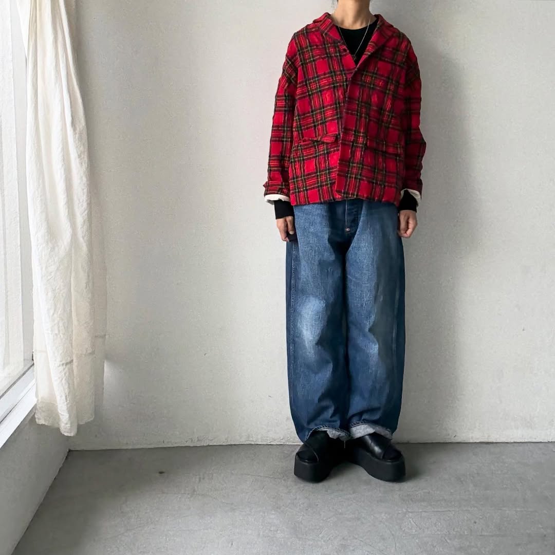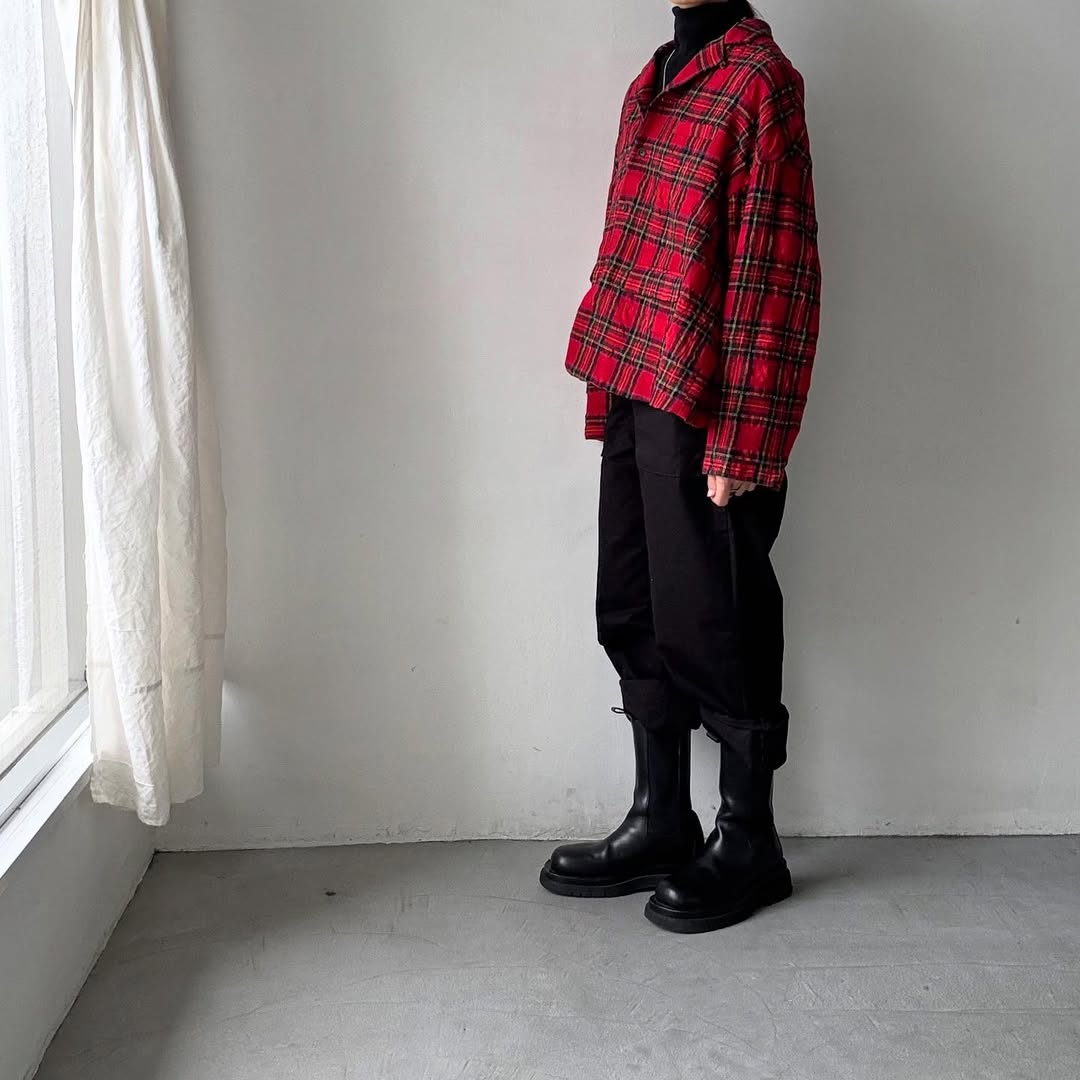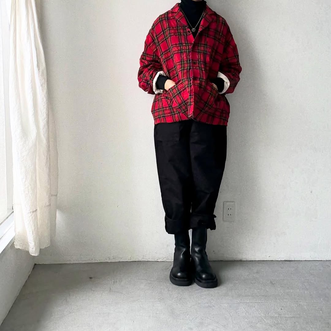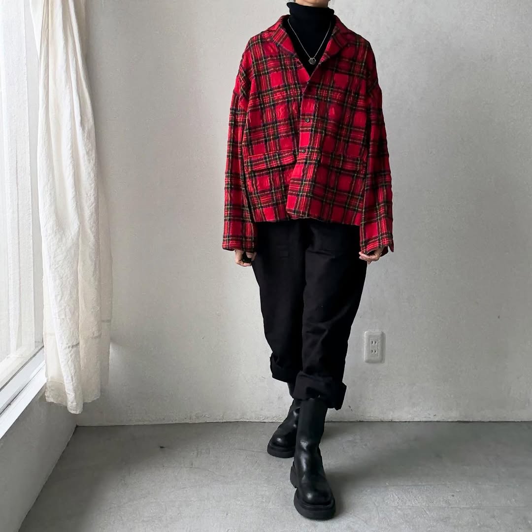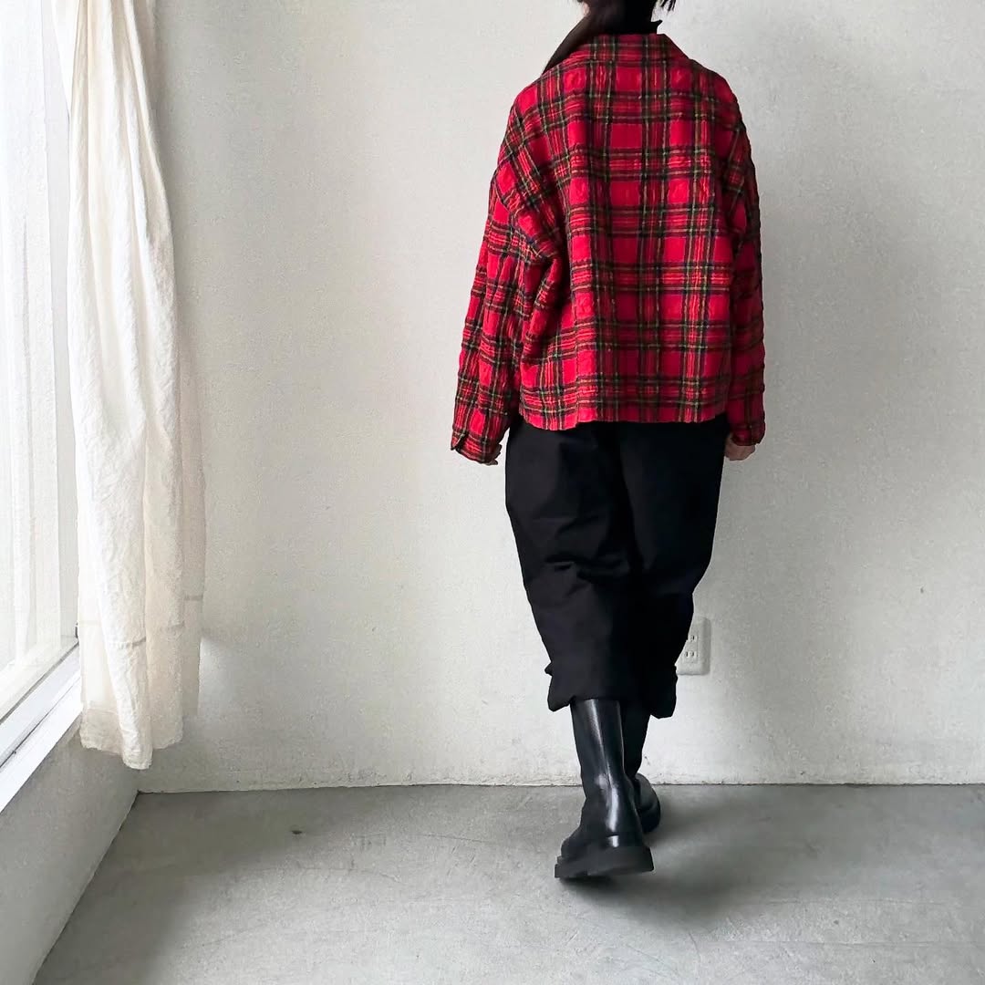 赤いタータンチェックが主役のジャケット。