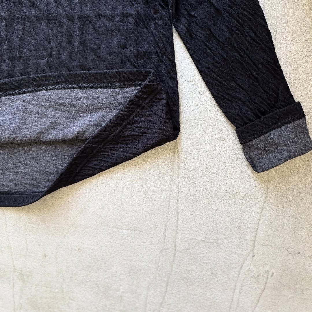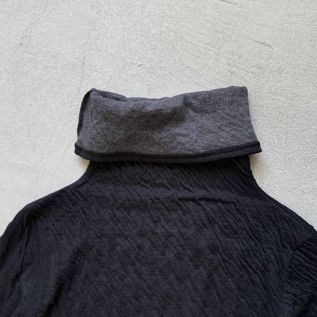 こちらはブラック。リバーシブルの生地を使っていて裏側はグレーです。タートル、袖を折り返すと裏側の色が見えてアクセントになります。