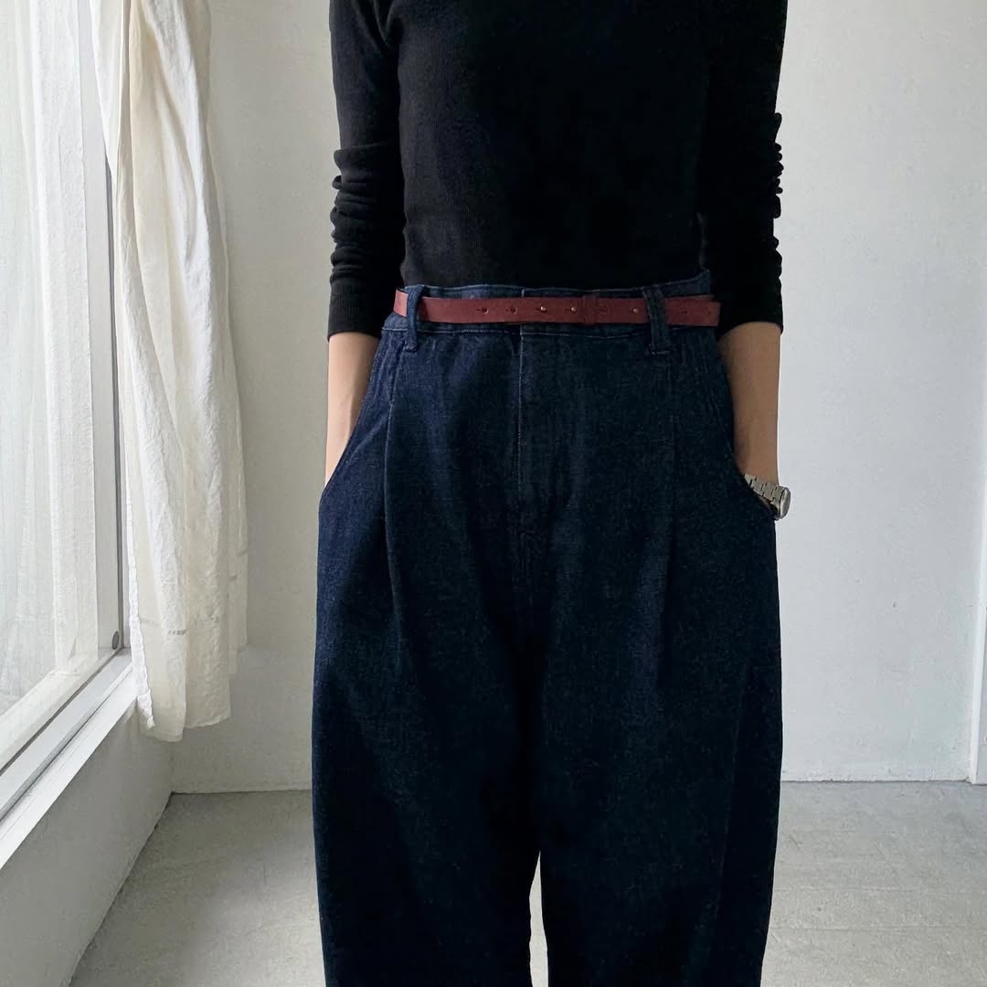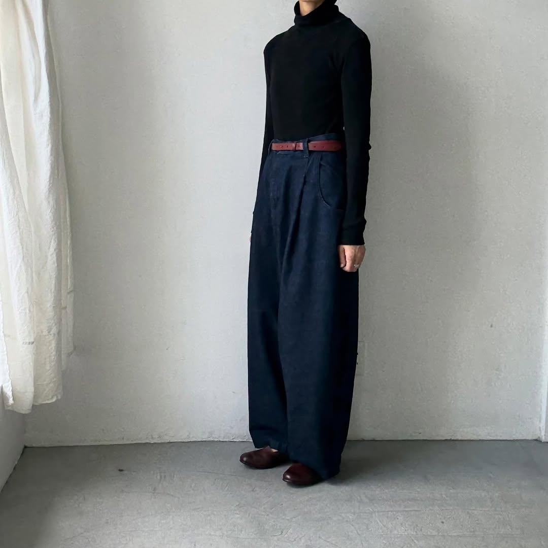 デニムにもよく似合う色。ブラックコーディネートの差し色に。