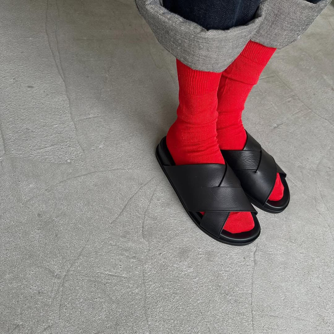 シャリ感のあるリネンのミドル丈ソックス。薄手なので夏にも涼しく履いていたけます。