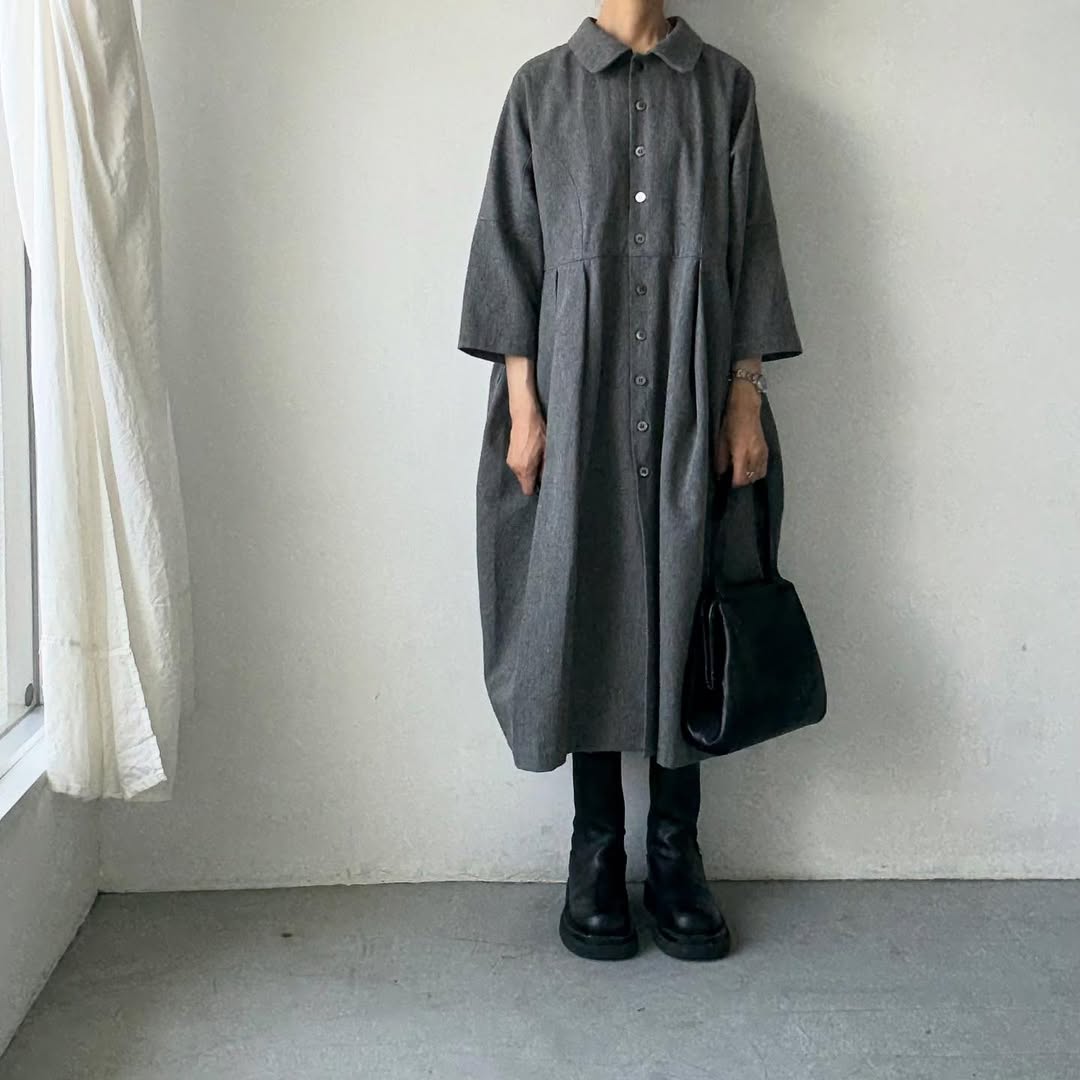 片面はボタンで全開するタイプなので、ボタンを留めてワンピースとして単体で着用する場合には中にペチコートを入れていただくと安心です。