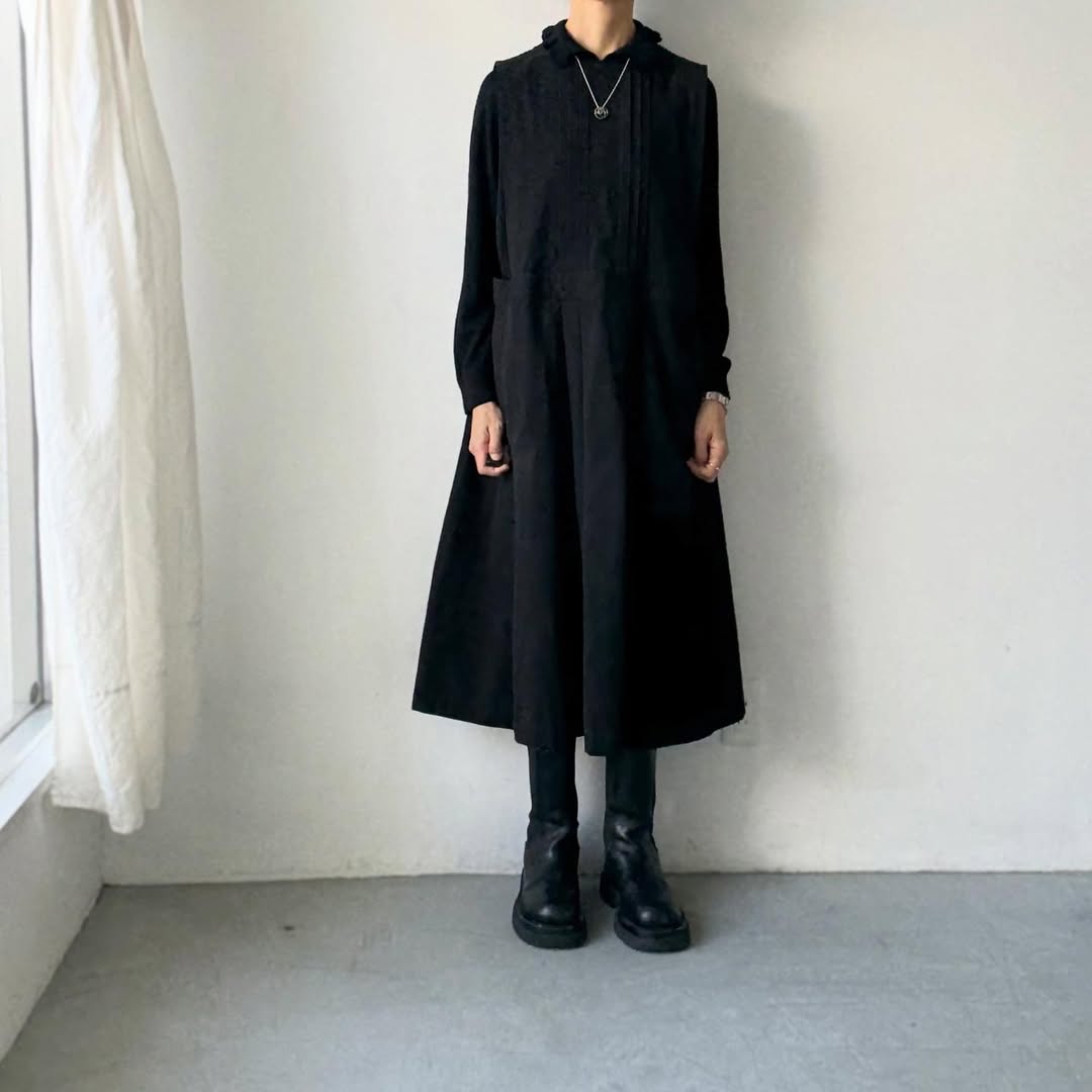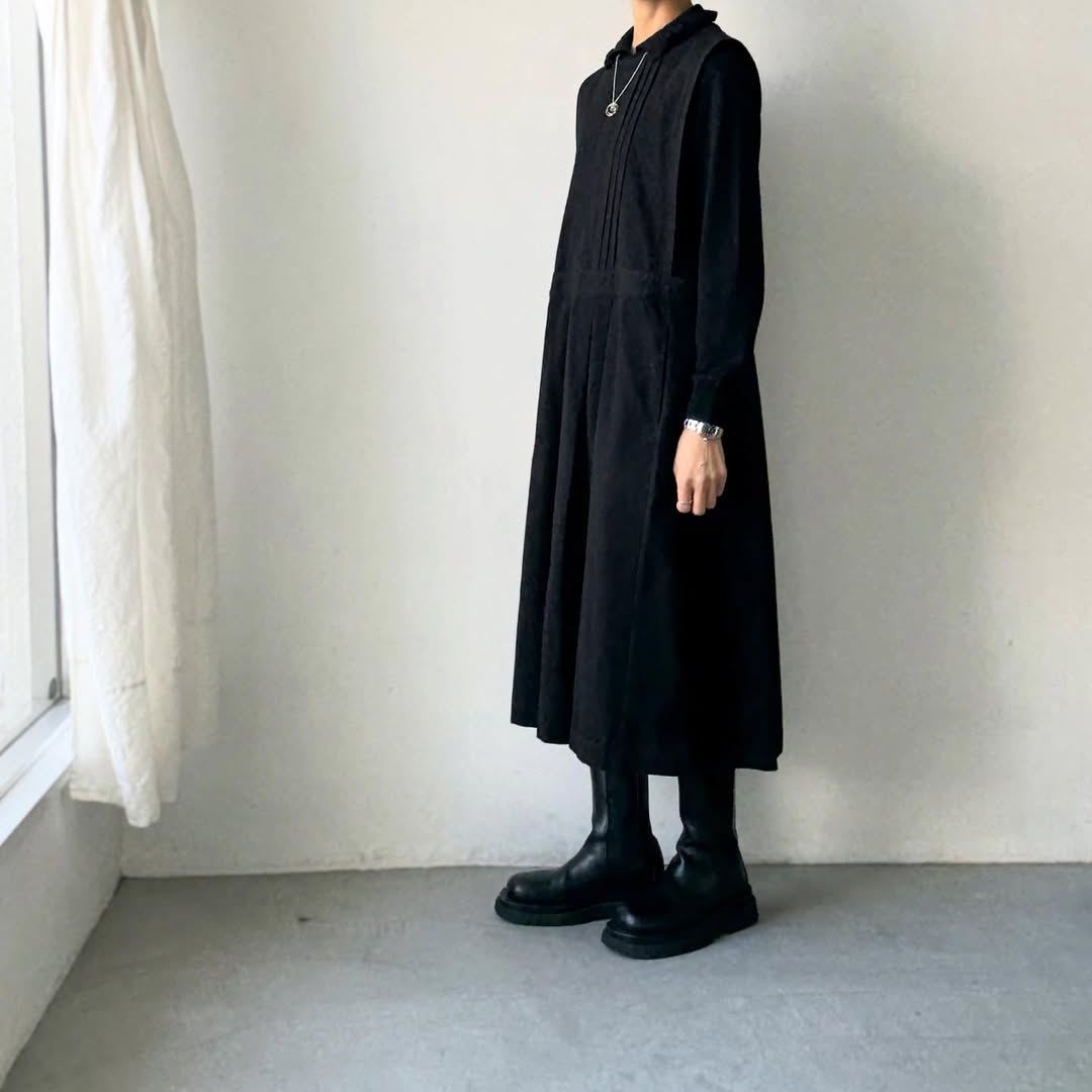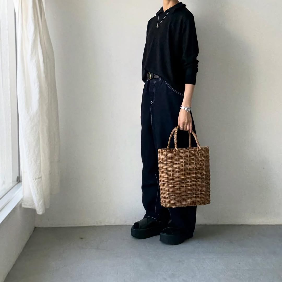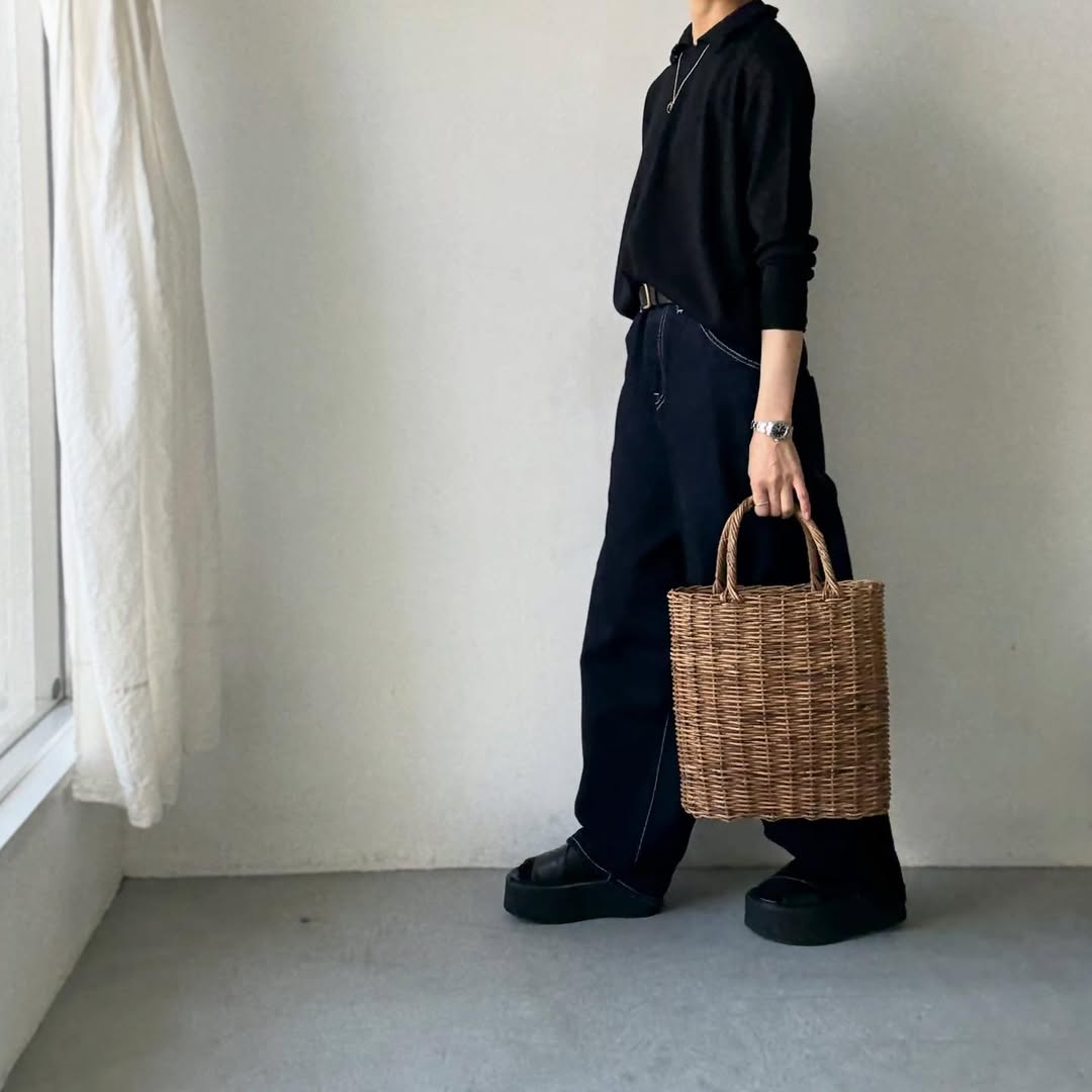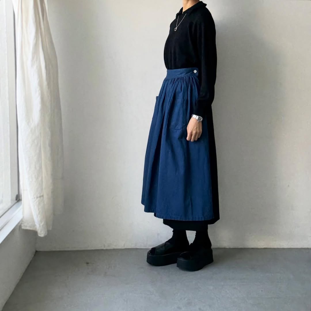 体の線を拾わない程良いゆとりのあるシルエットとやや短めの丈感です。体型を選ばずご着用いただけます。