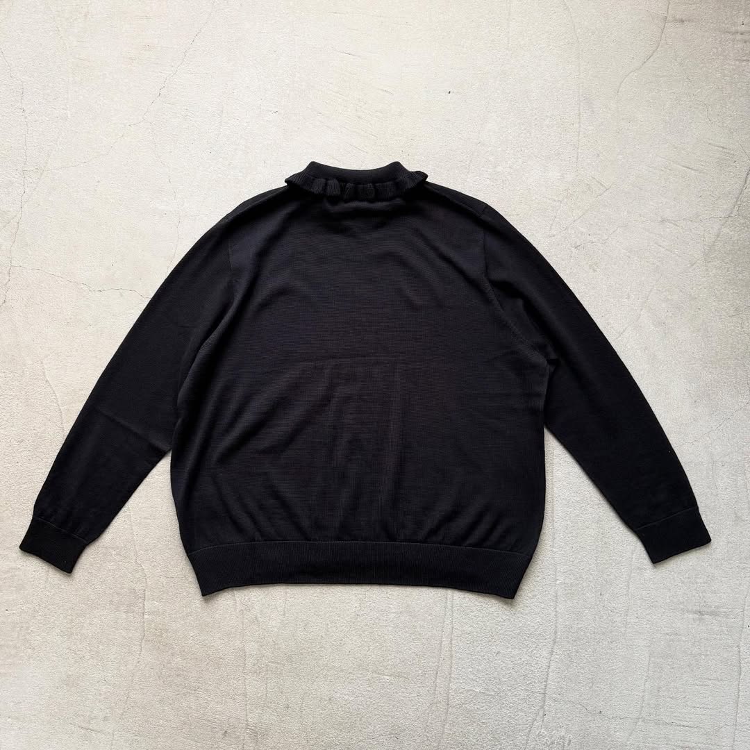 襟の端にぐるりとフリル編みされているのが可愛いポロニット。