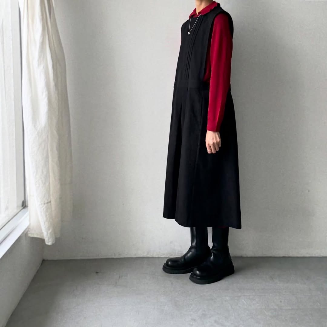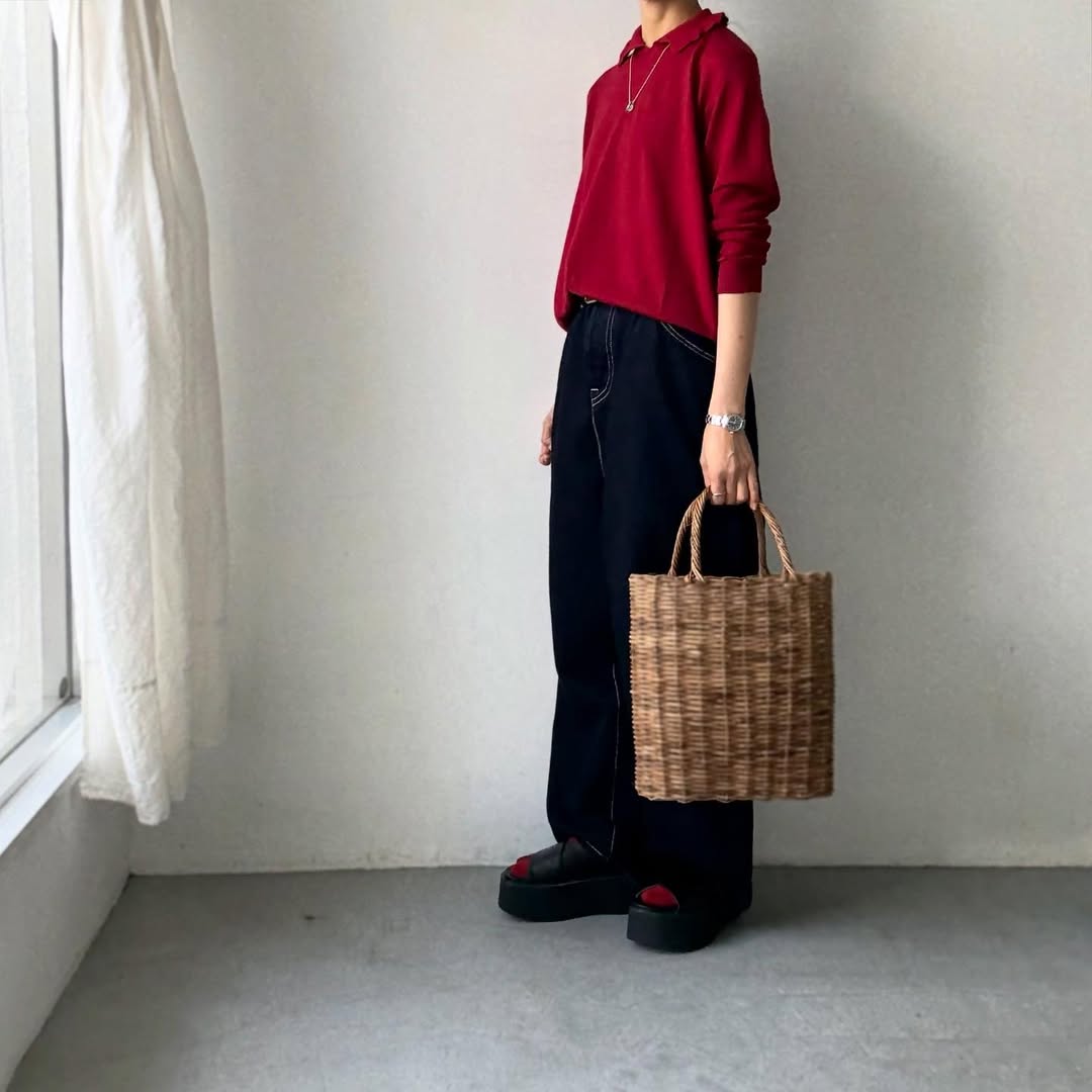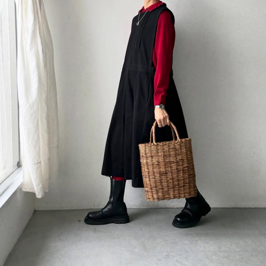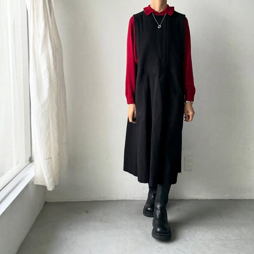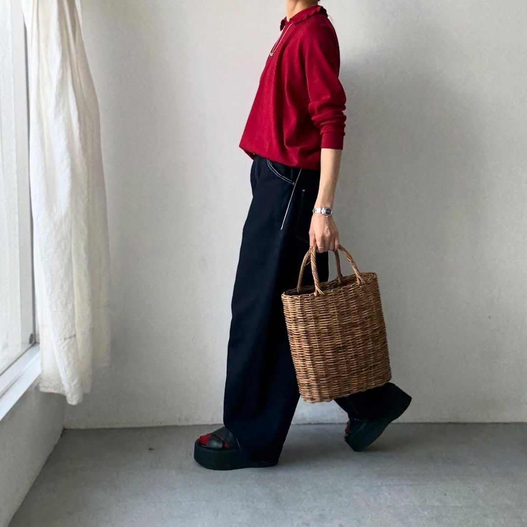 体の線を拾わない程良いゆとりのあるシルエットとやや短めの丈感です。