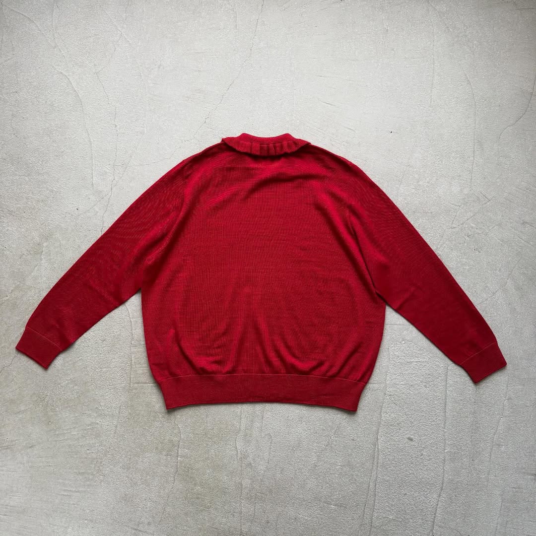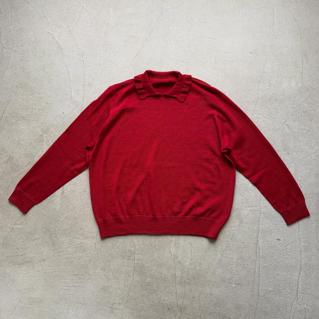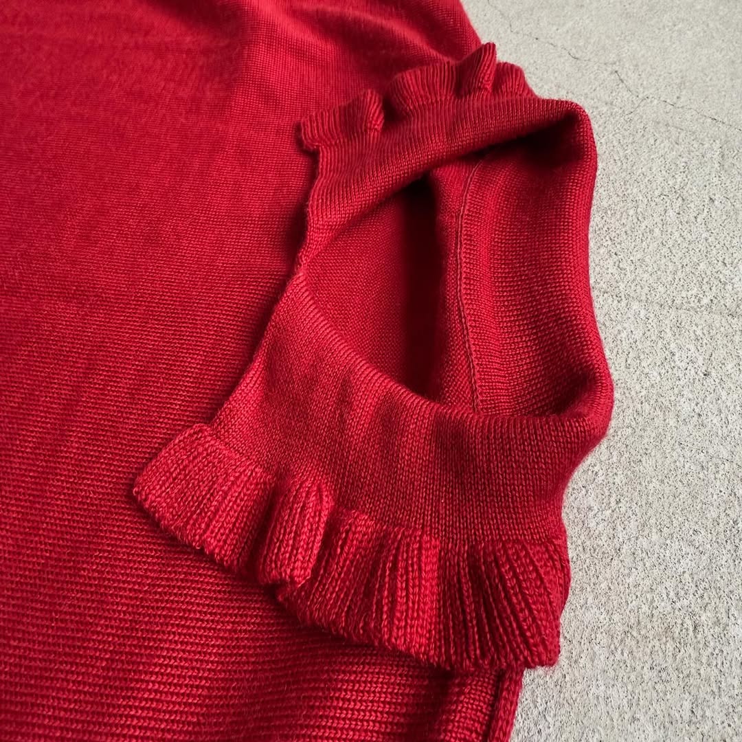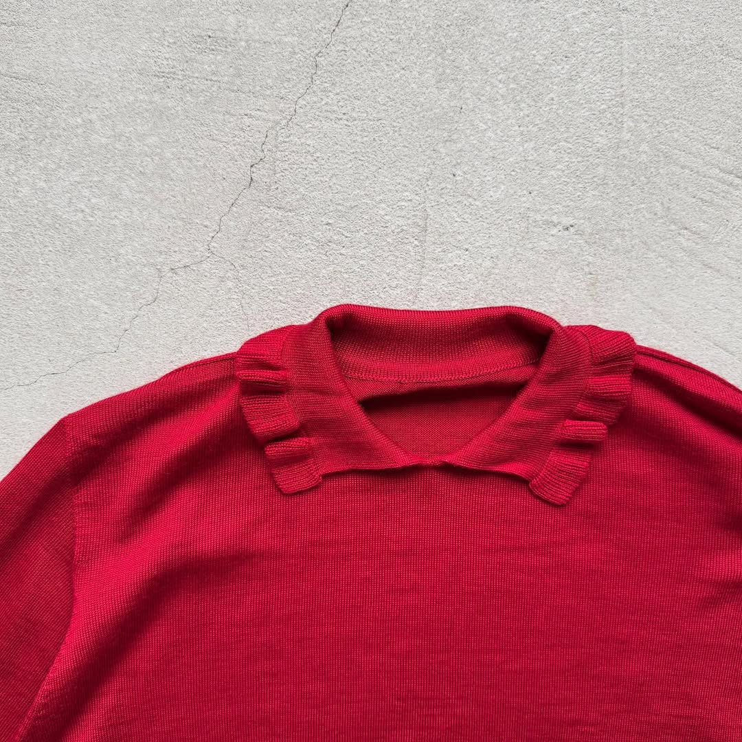 襟の端にぐるりとフリル編みされているのが可愛いポロニット。