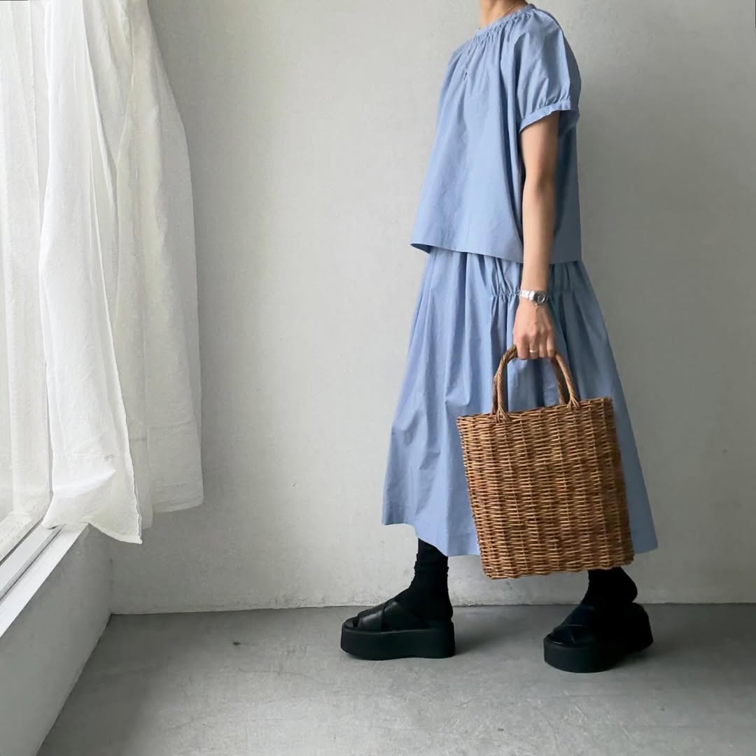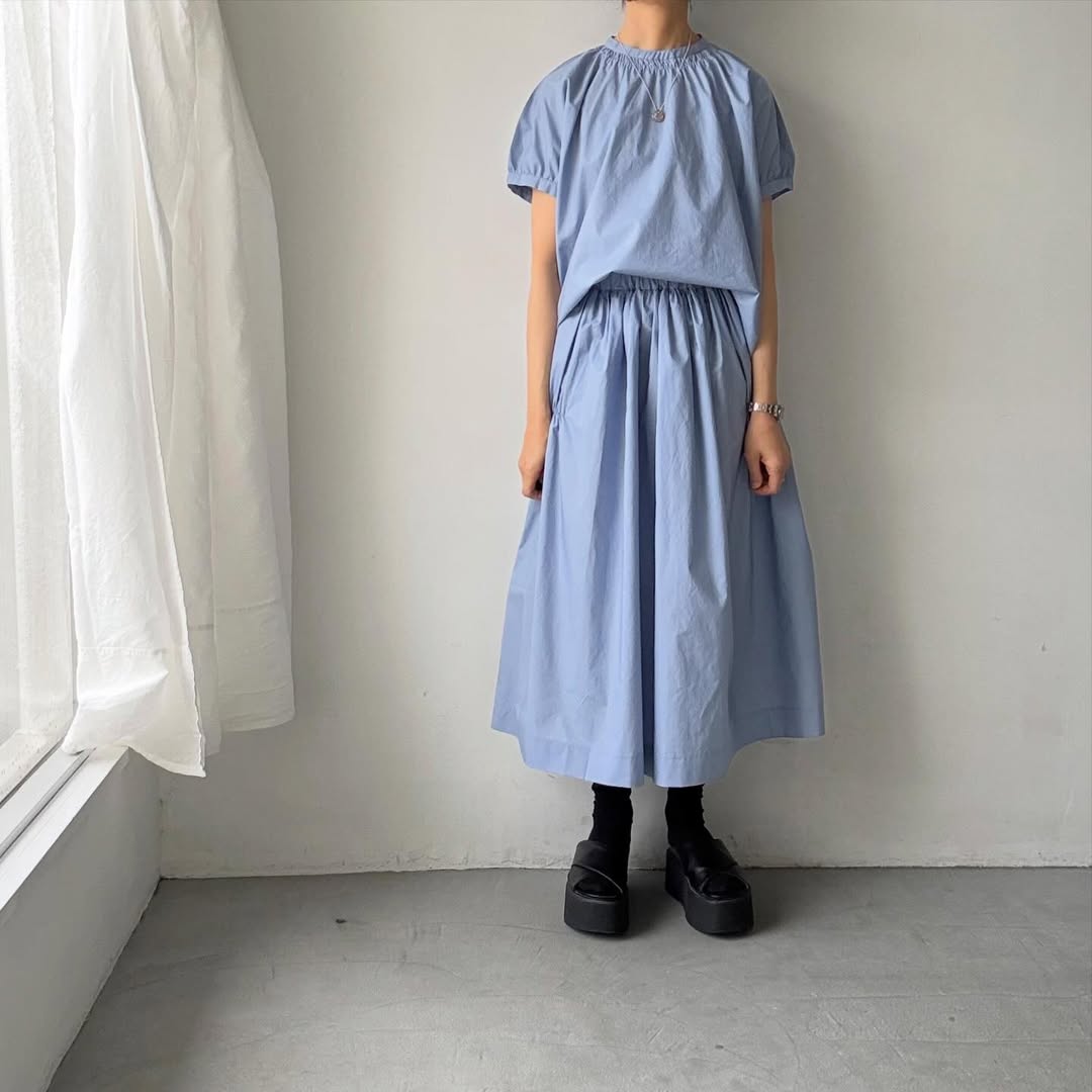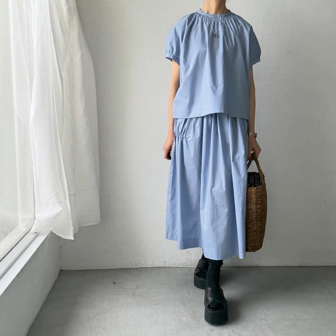 コットンシャーリングスカートとセットアップにするとワンピースのような雰囲気でご着用いただけます。