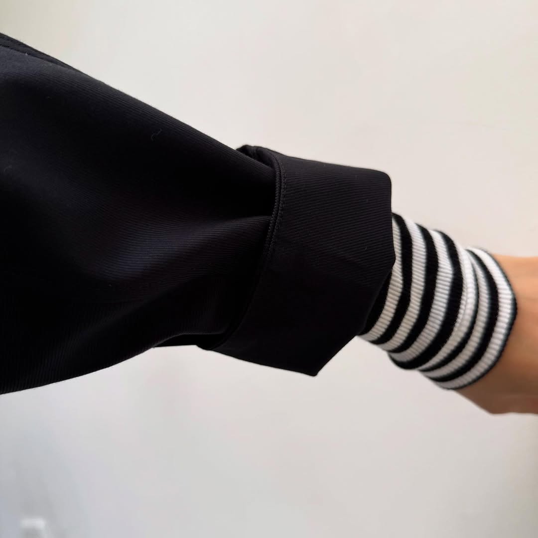 袖口は切替でリブがあり、たくし上げても伸び難く、見た目にも可愛さがあります。