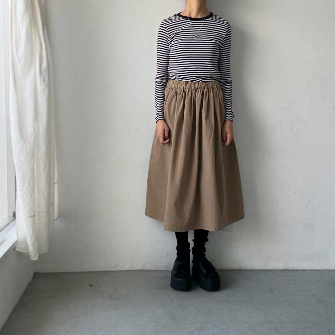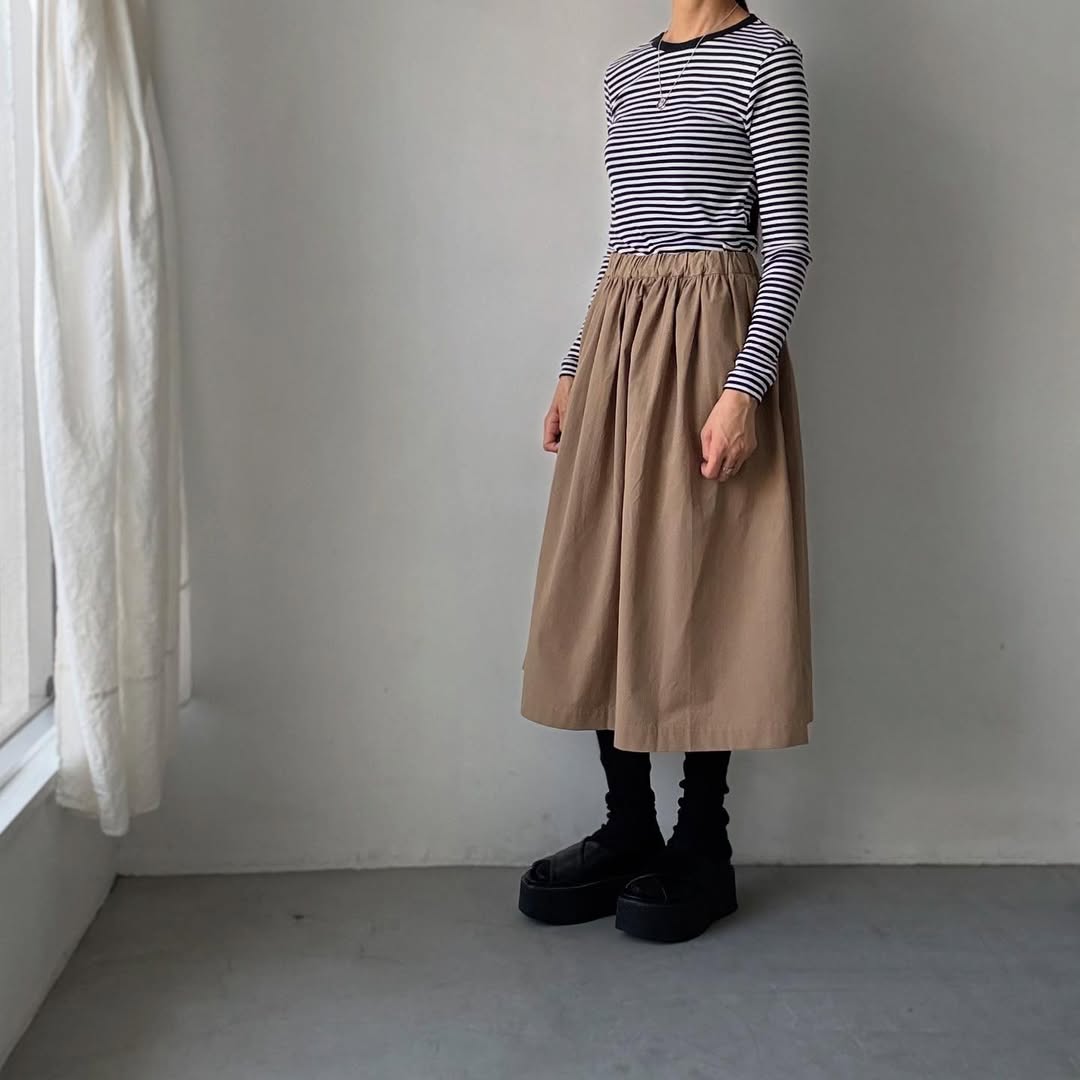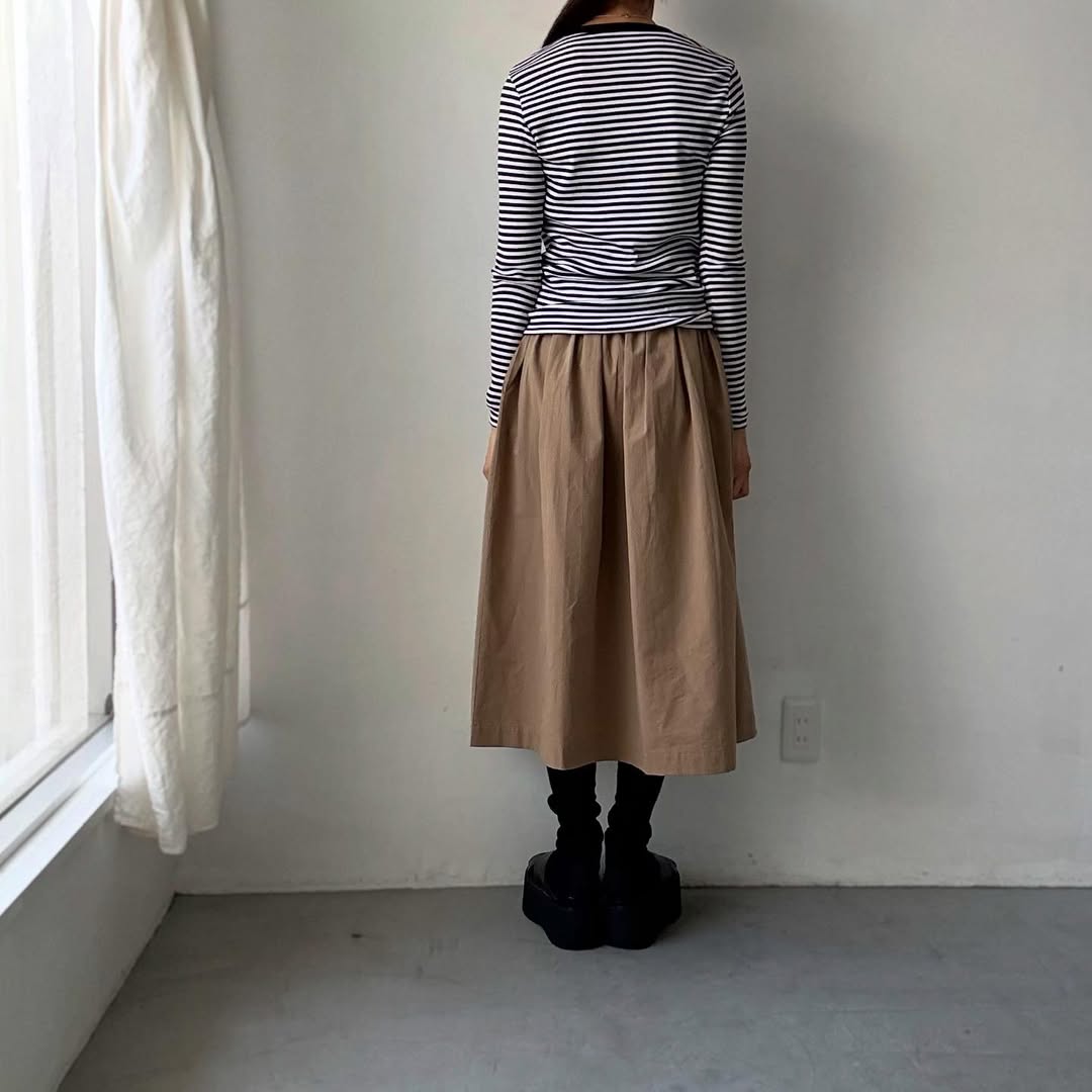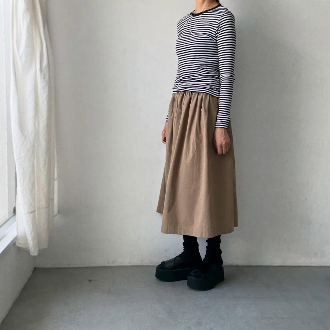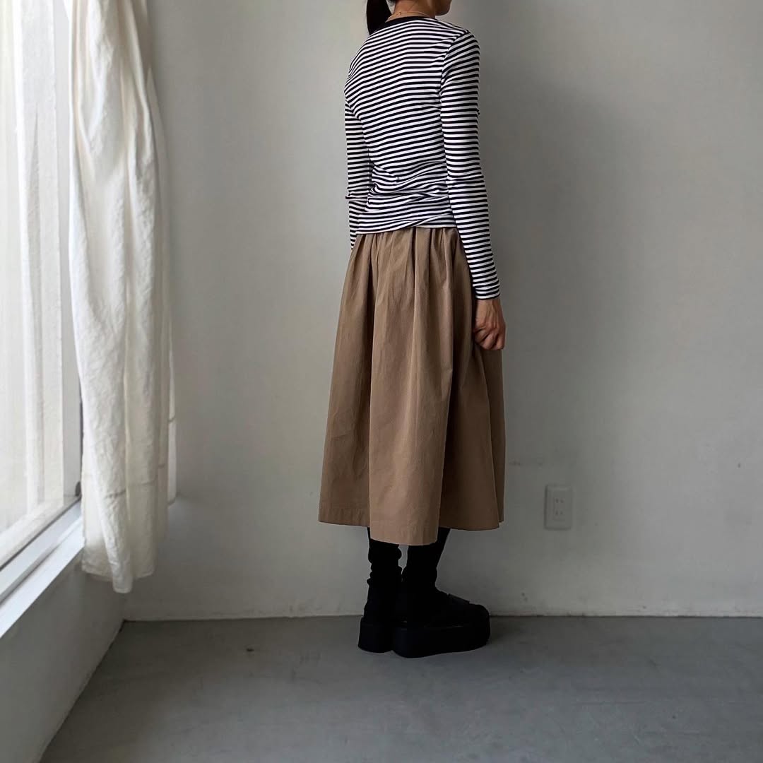 細ボーダーがコーディネートのアクセントになりそうです。