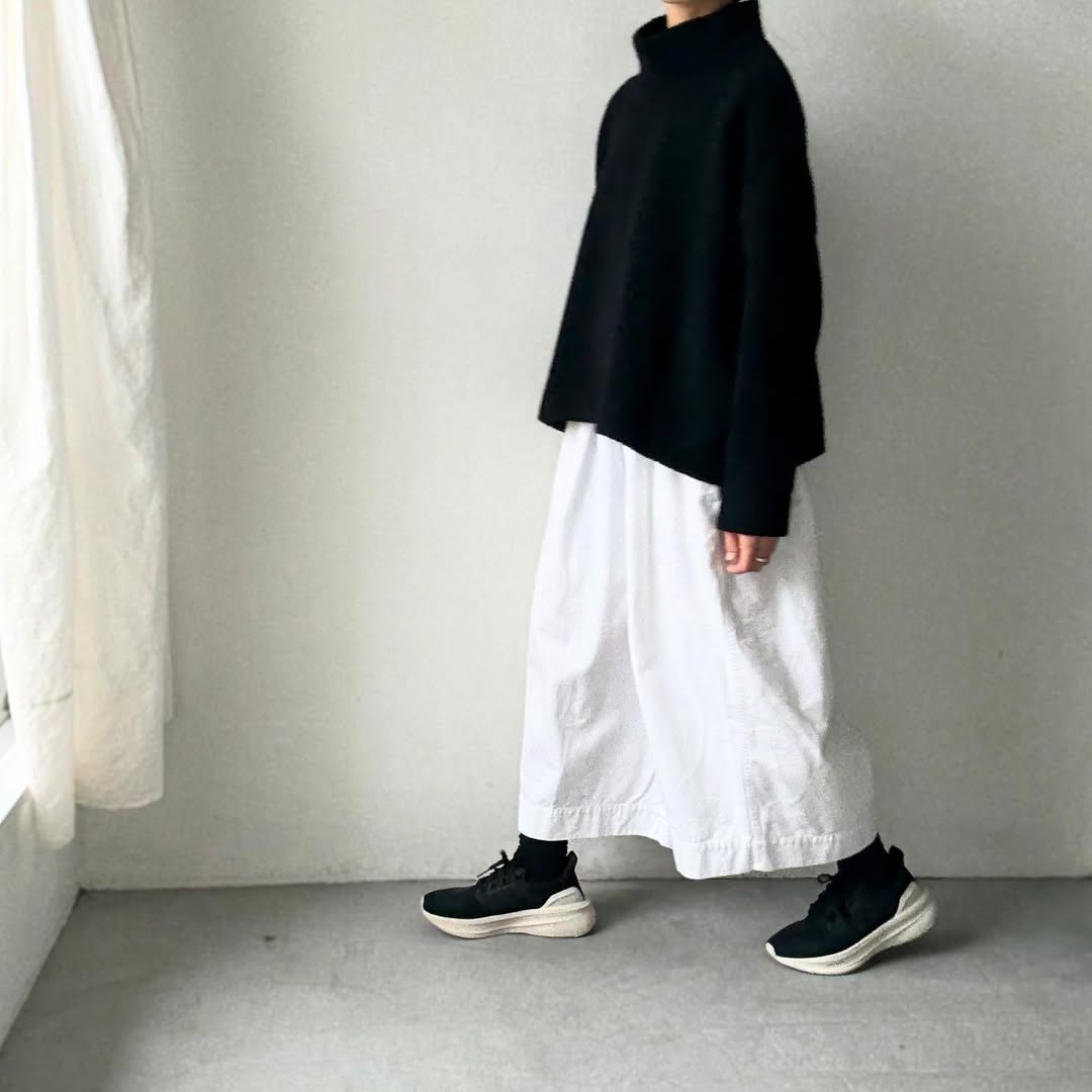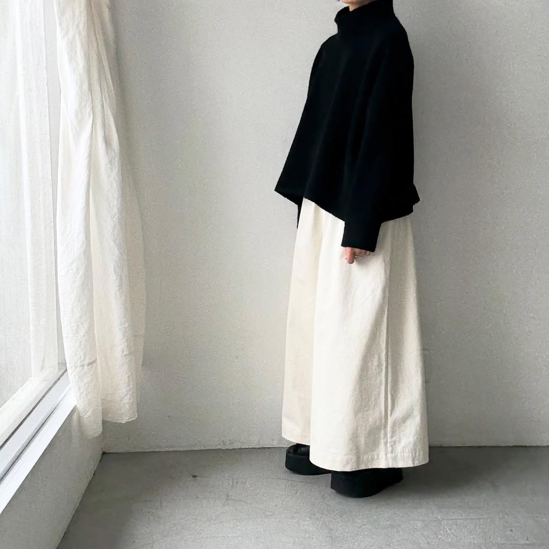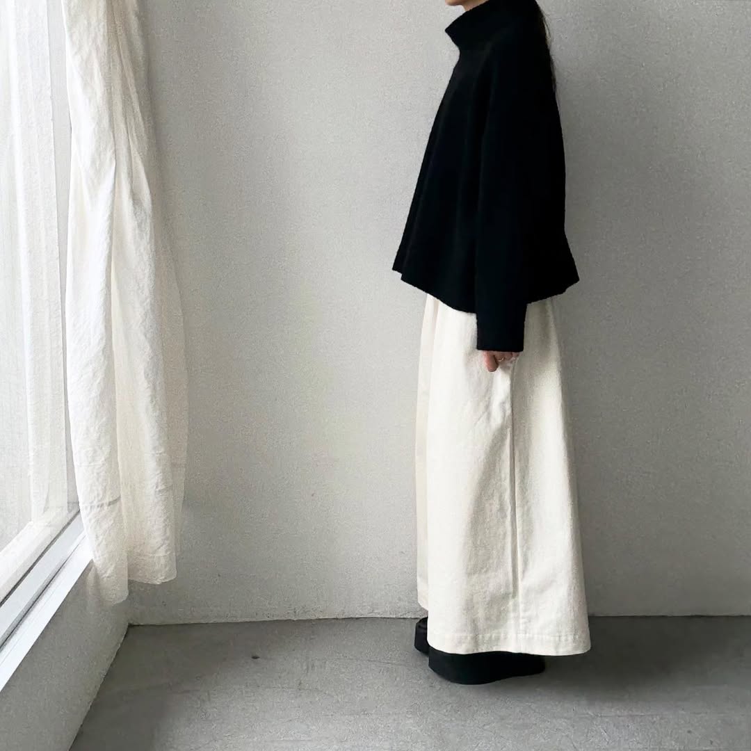 身幅が広いのでワンピースなどの上にざっくりライトアウター感覚でのコーディネートもおすすめ。