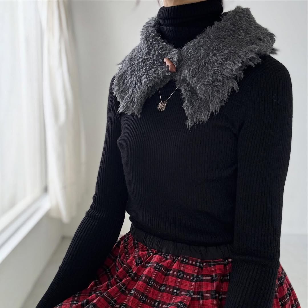 付け襟感覚でノーカラーのコートやジャケット、セーターに…と、コーディネートの幅が広がりそうです。