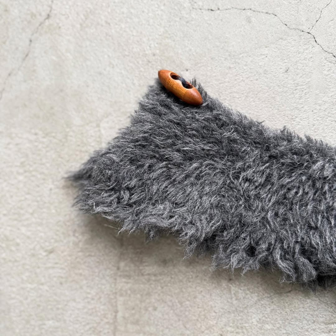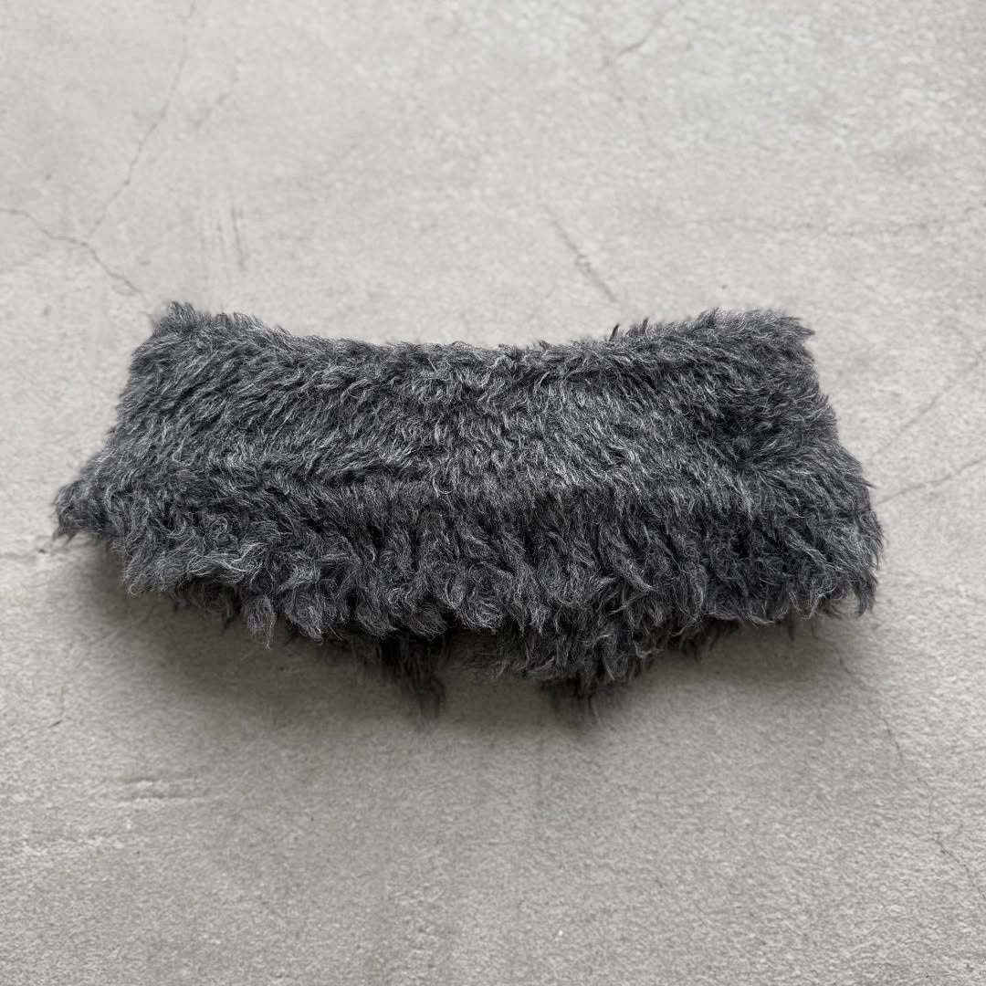 ベビーアルパカ混のモール糸で編み立てられたティペット。とても柔らかで軽く温かです。全体的に生地が2重になっていてふっくらボリュームがあります。