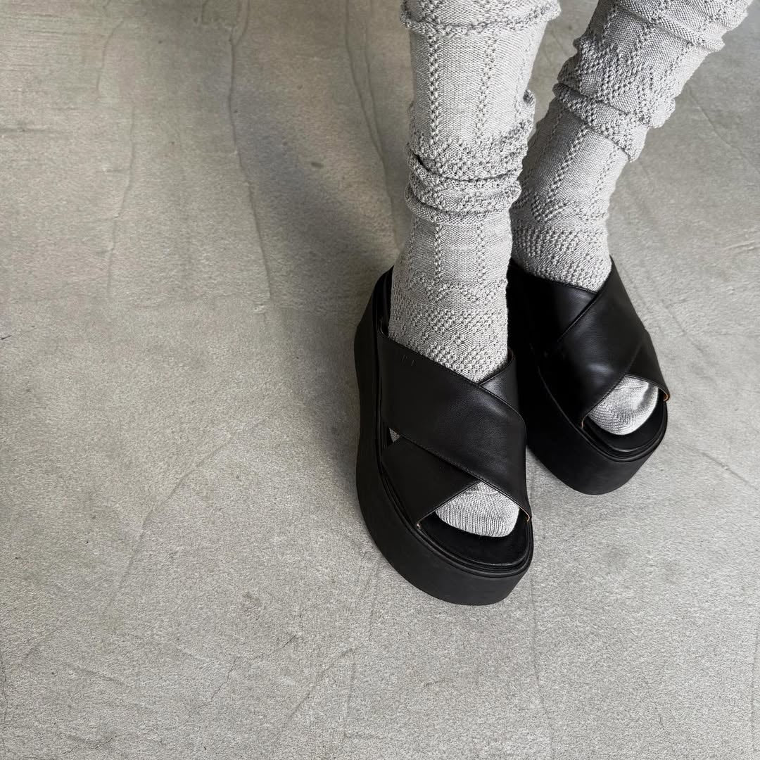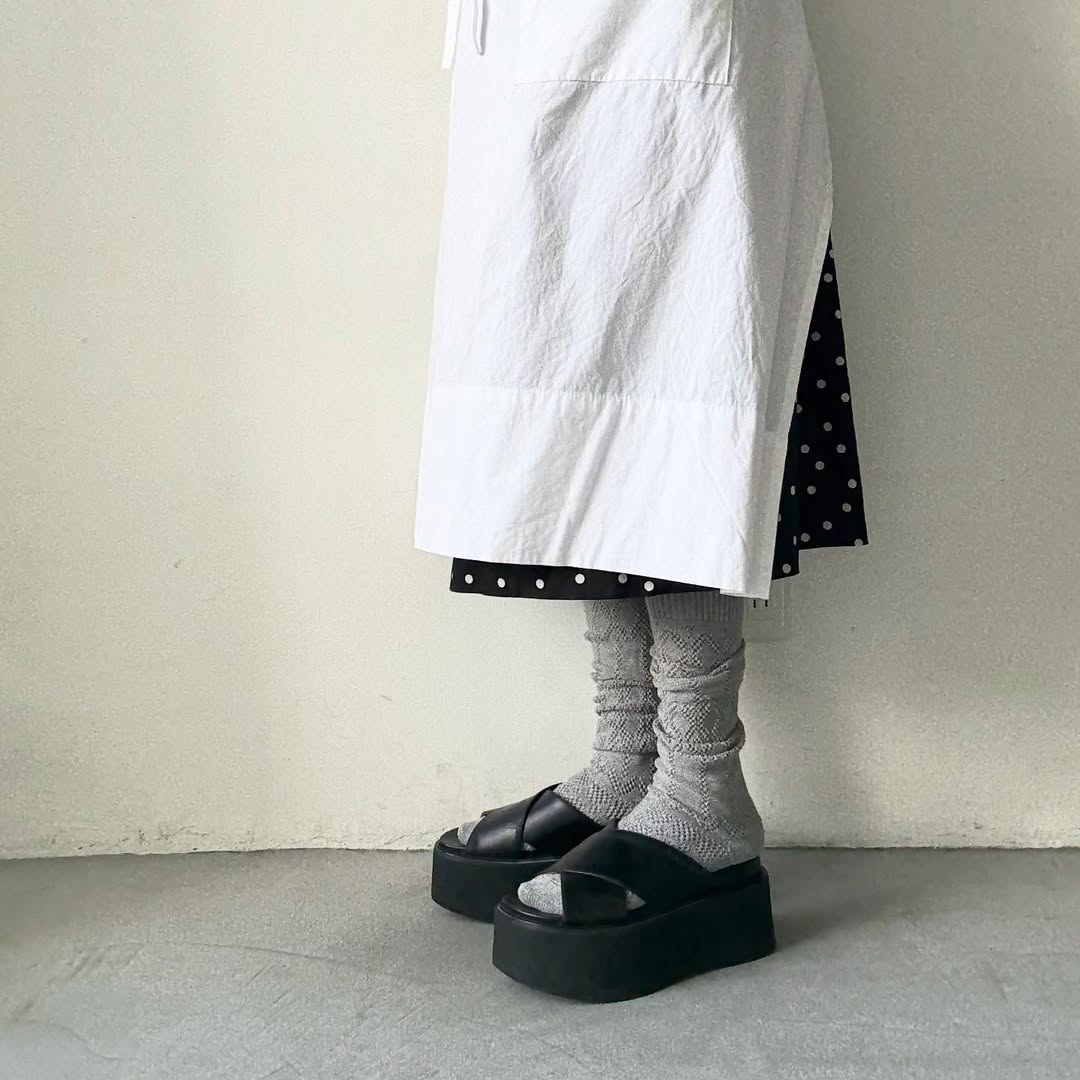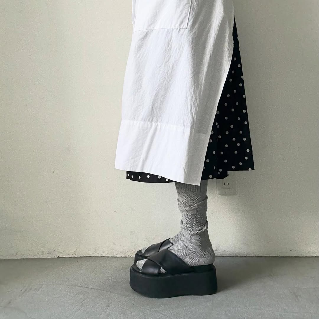 柔らかなコットン糸で程良い厚みに編み立てられています。サンダルコーディネートにも似合う存在感です。