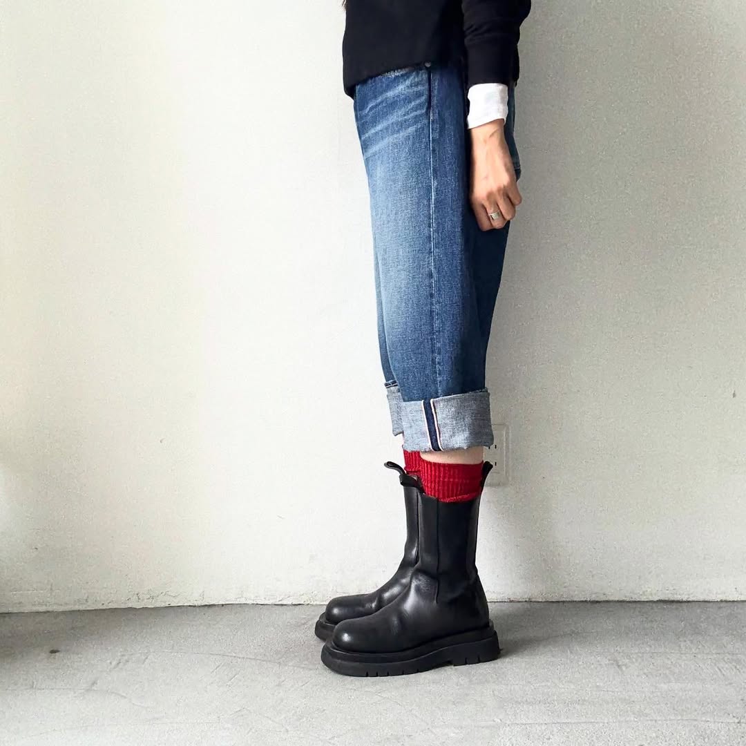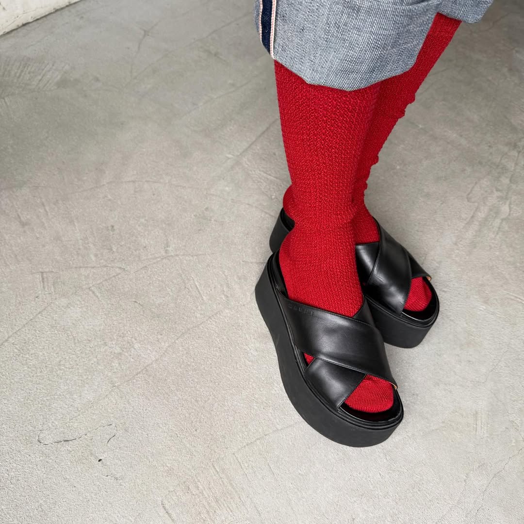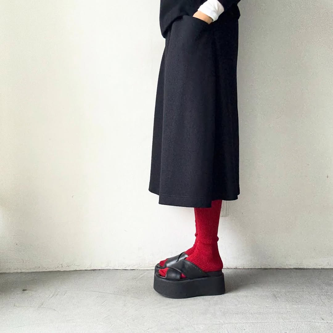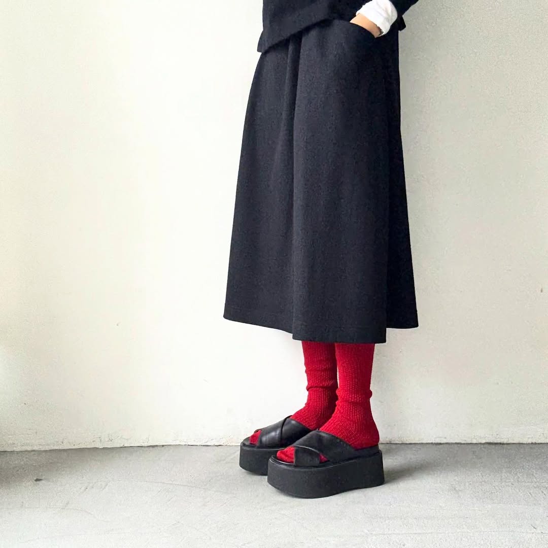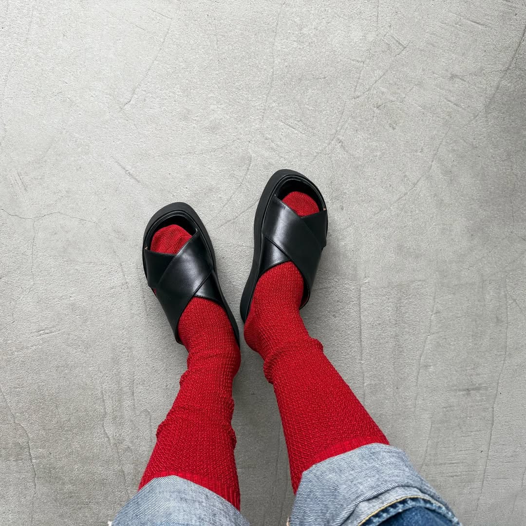 程良い厚みがあり存在感のあるソックスです。かといって厚過ぎず靴を選びません。サンダルコーデやスニーカー、サボやストラップシューズに。