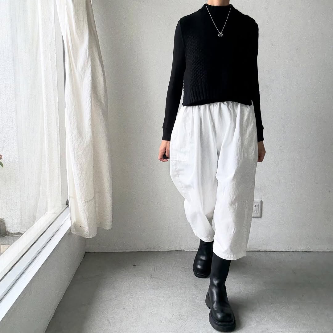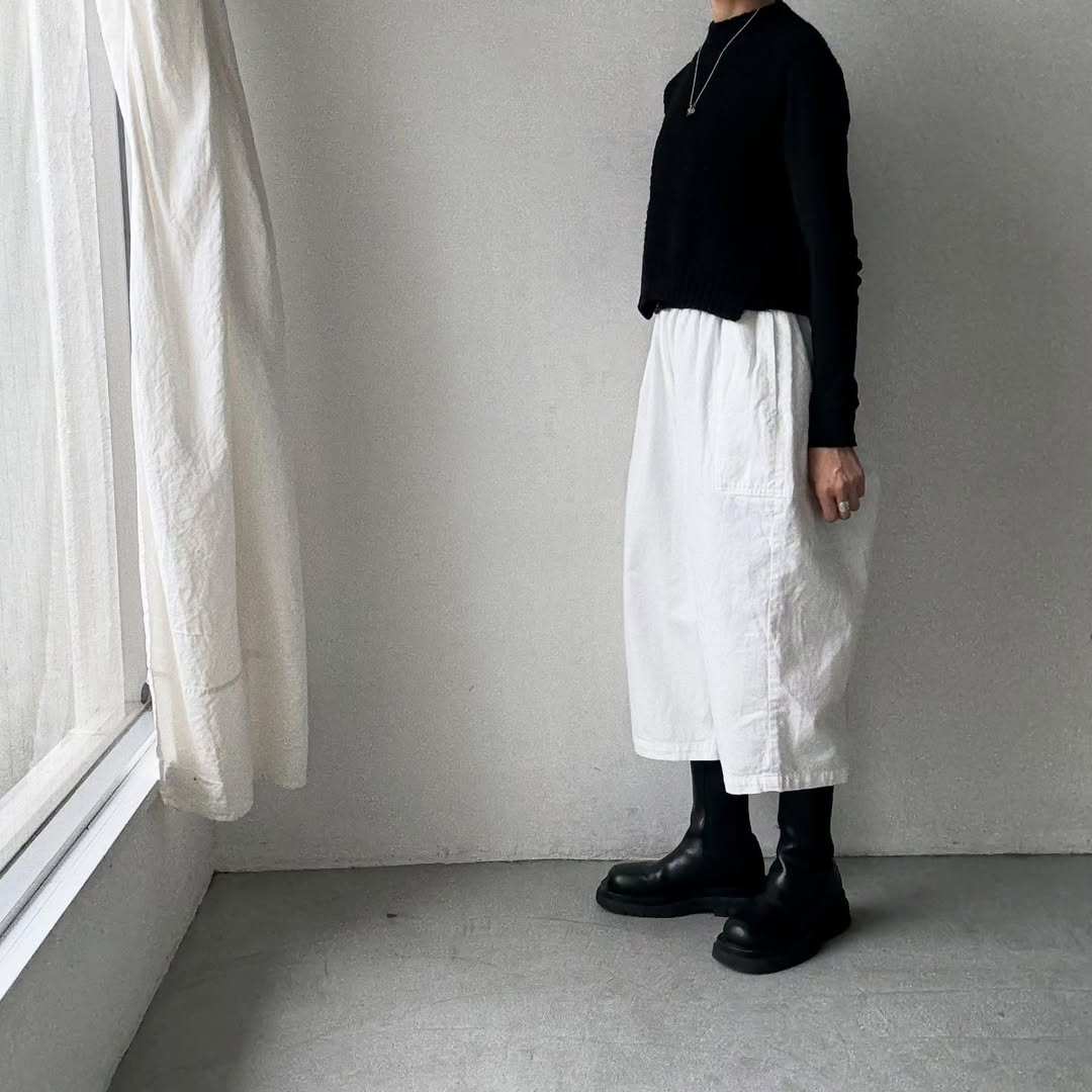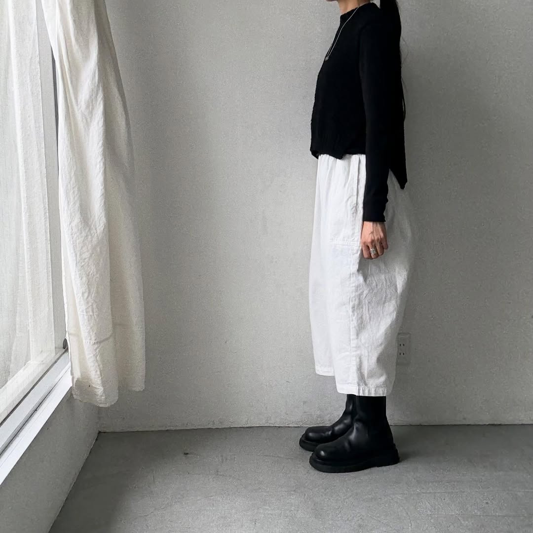 これからの季節にショート丈やミドル丈のブーツと合わせやすい丈感です。