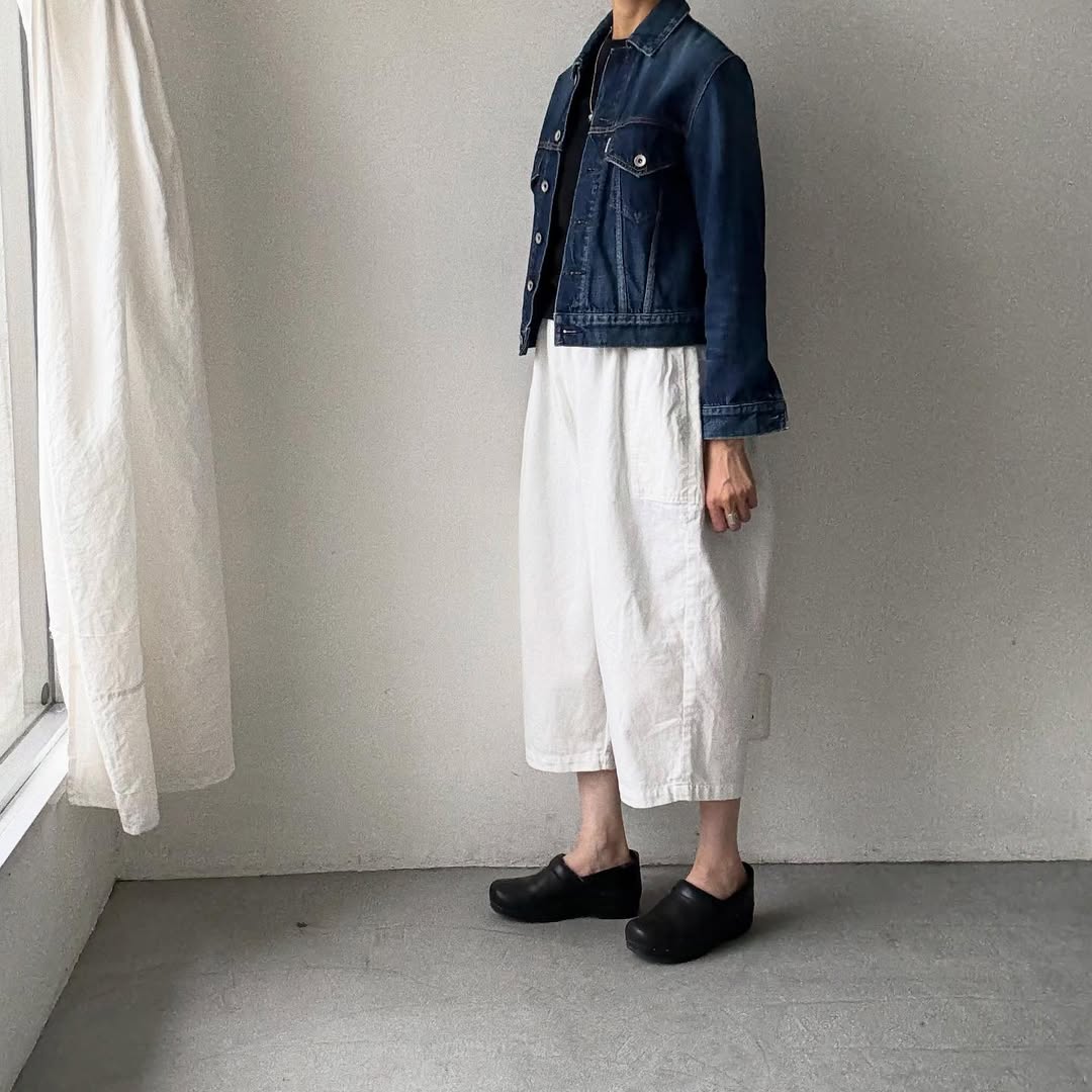 10オンスのホワイトデニムは柔らかさのある中厚地です。オールシーズンお使いいただけます。