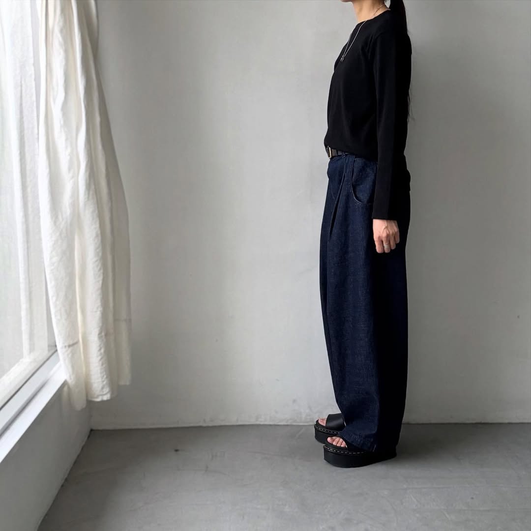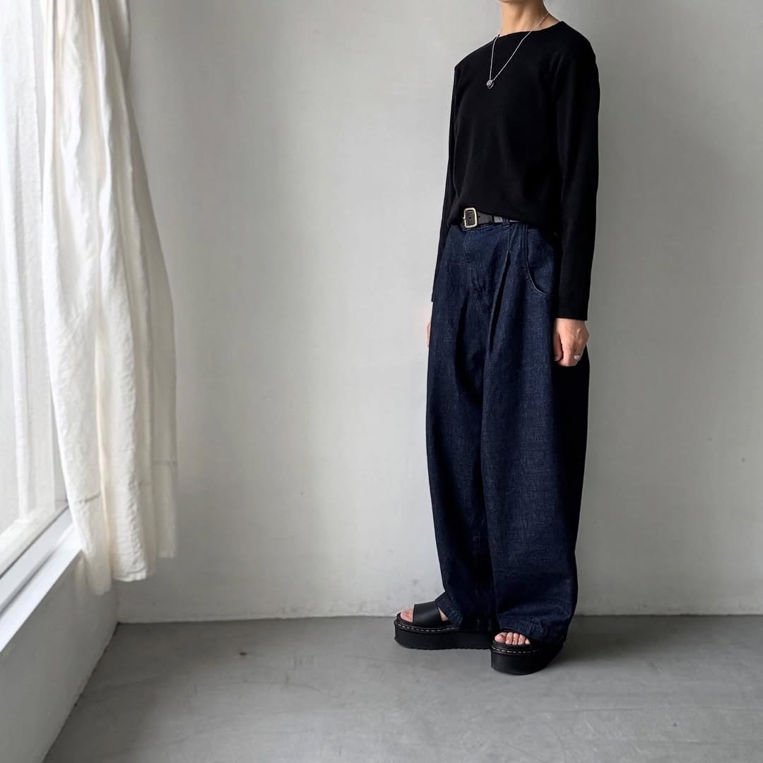 首周りは左右に開き過ぎないボートネック。首周りがすっきり見えます。
