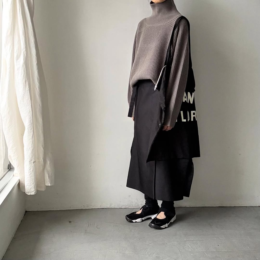 メンズのセーターをオーバーサイズで着るのとは一線を画していて、レディースに落とし込んだデザインなので野暮ったさがありません。
