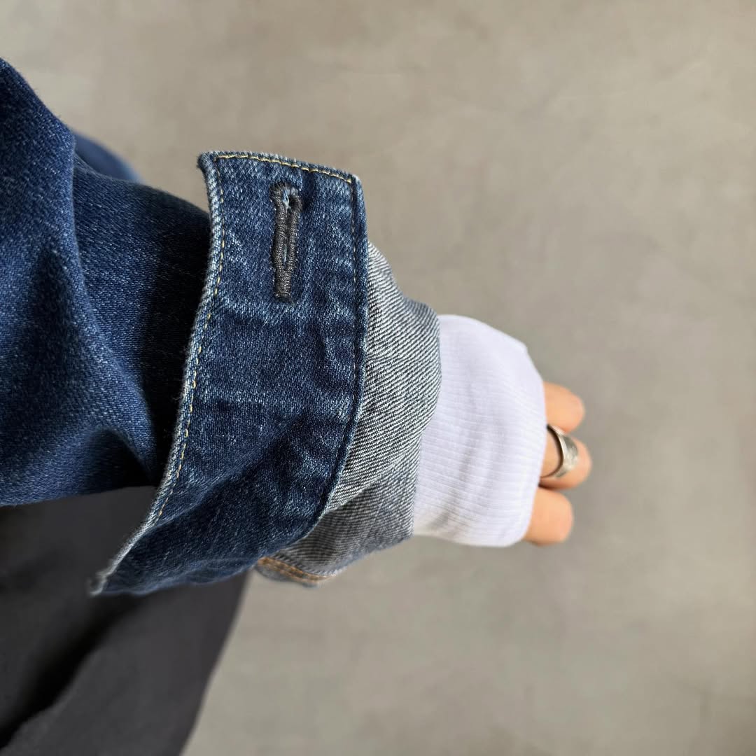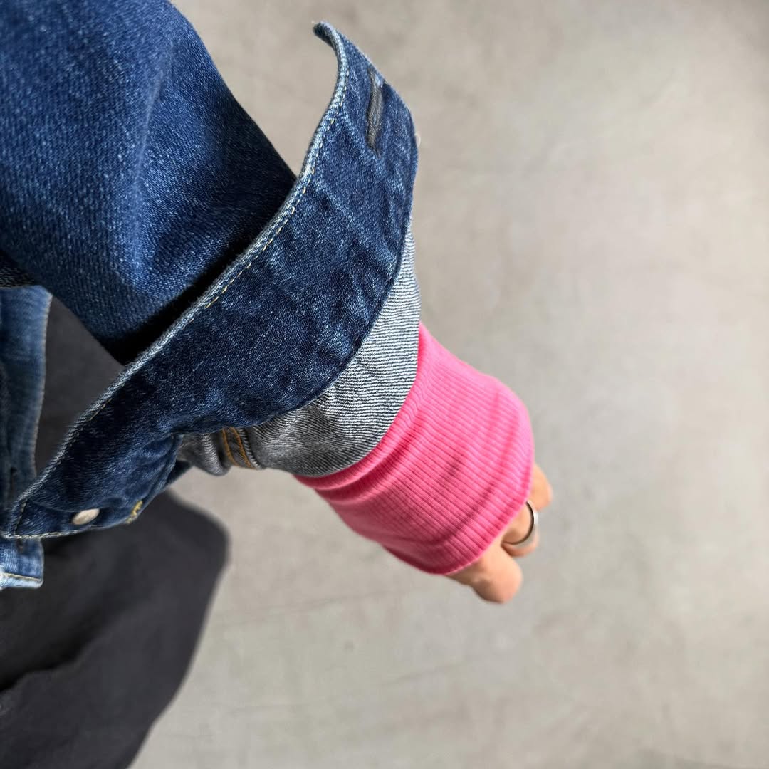 上にジャケット、カーディガン、セーターなどを合わせて袖口からチラッと色を見せるとコーディネートがピリッと締まります。