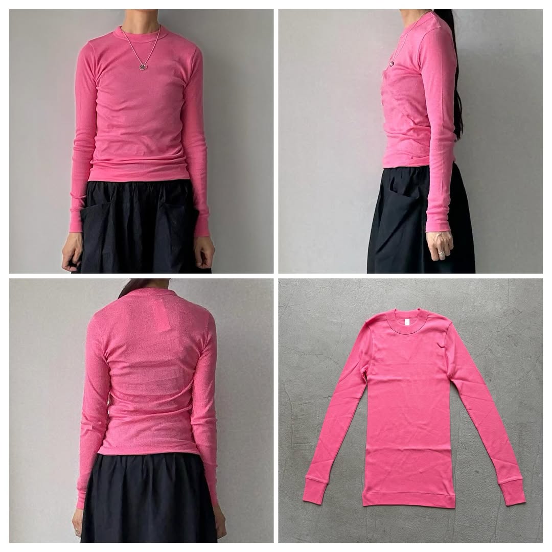 定番の丸胴テレコクルーネック長袖プルオーバー。