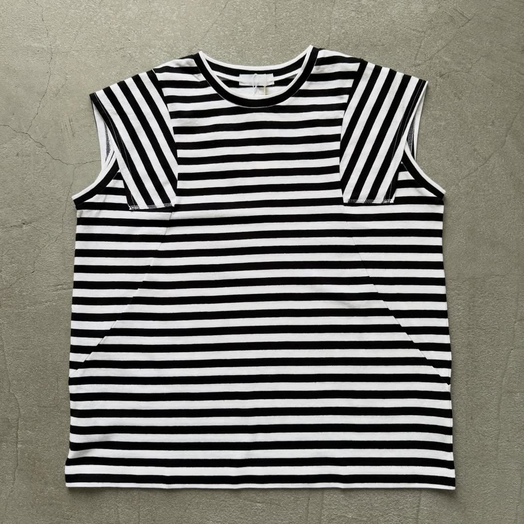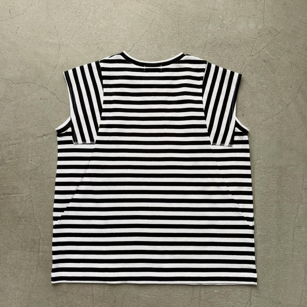 homspun 天竺ボーダーノースリーブプルオーバー ホワイト×ブラック